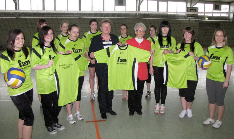 Nachdem unsere Schule einen neuen Namen erhalten hat, benötigten die Sportler für ihre zahlreichen Wettkämpfe natürlich auch neue Trikots. Aber dafür braucht man auch viel Geld. Zum Glück fanden wir einen Sponsor, der sich unseres Problems annahm. Die Firma f.a.n. Frankensolz sponserte uns 36 nagelneue Hemden. Nun sind wir wieder gut gerüstet und können weiter viele Erfolge bei den anstehenden Wettkämpfen erringen.