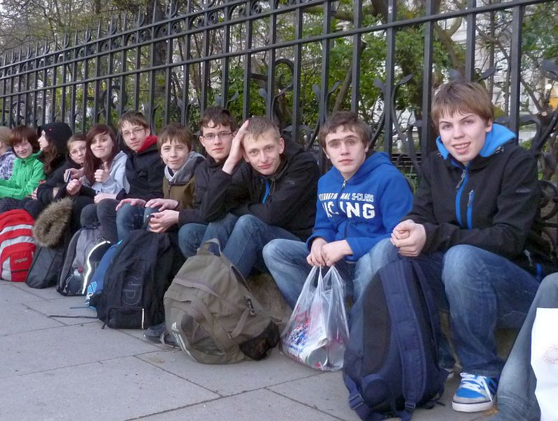 Leider war davon bei der Einfahrt in die Londoner City nicht mehr viel übrig, aber wie es sich für einen guten Gastgeber gehört, passte sich die Stadt unserem Bus an: vollgestopft mit Touristen. Dies tat unserem Tatendrang aber keinen Abbruch und bei immer freundlicherem Wetter "erstürmten" wir erst den Tower (die Kronjuwelen durften wir leider nicht mitnehmen) und kaperten danach ein Themse-Schiff in Richtung Greenwich. Am Nullmeridian gelang es uns erfolgreich, Ost- und West- Halbkugel unserer Erde gegeneinander auszubalancieren, um dann, geschafft von all den Heldentaten, unseren englischen Gastfamilien in die Arme zu fallen. Auch dies war aufgrund teilweise unterschiedlicher Auffassungen von Pünktlichkeit nicht immer leicht, wurde aber mit deutscher Geduld und britischem Organisationstalent gemeistert.