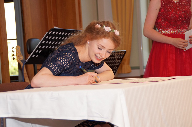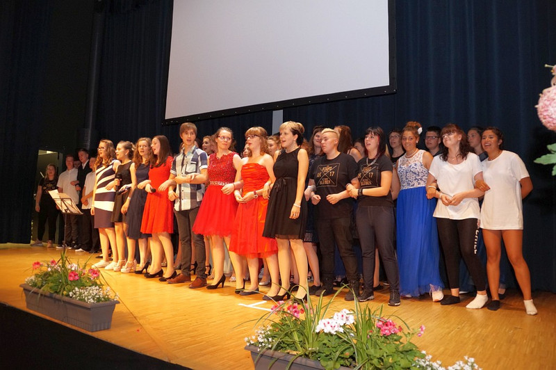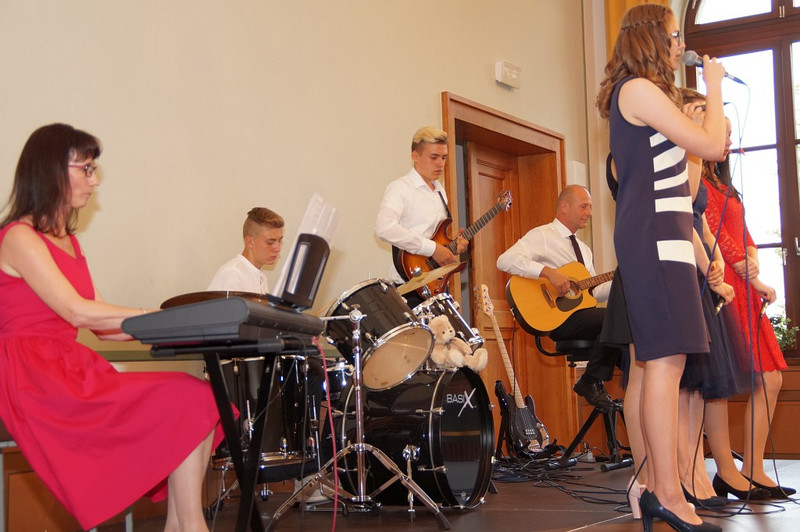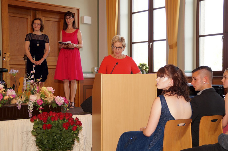 In gewohnt professioneller Manier sorgte die Schulband für die kulturelle Umrahmung der Feierstunde. Besonders bemerkenswert war, dass die vier Sängerinnen, wie auch vier Techniker, selbst zu den Absolventen gehören. Die herzliche Verabschiedung und der damit verbundene Dank bildete den Abschluss der Veranstaltung.