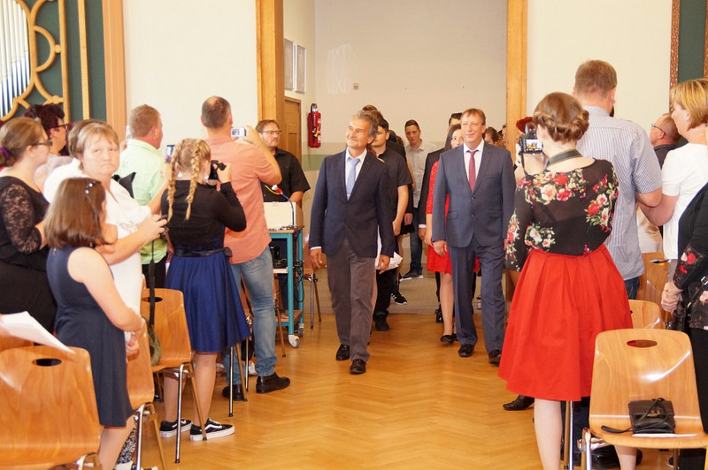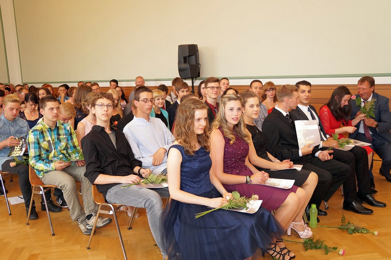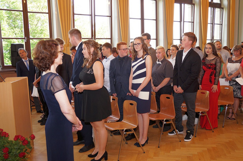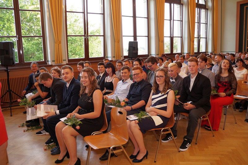 In zwei Durchgängen fand am Freitag, dem 23.06.2017, in der Aula der Robert-Härtwig-Schule die feierliche Übergabe der Abschlusszeugnisse an 82 Absolventen des Realschul- und 15 des Hauptschulbildungsganges statt.