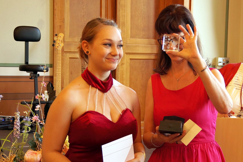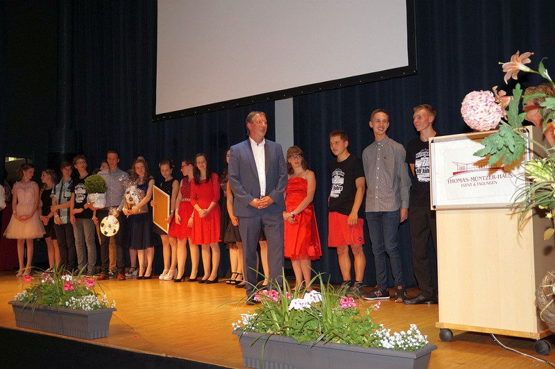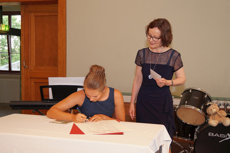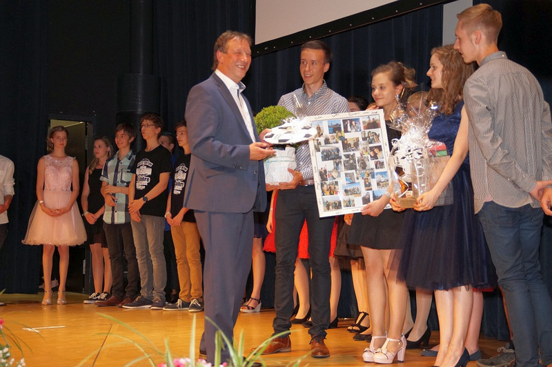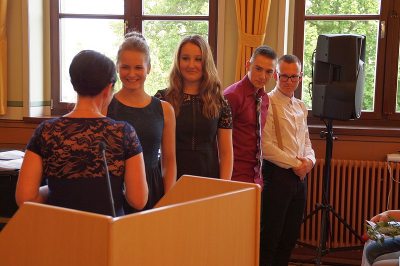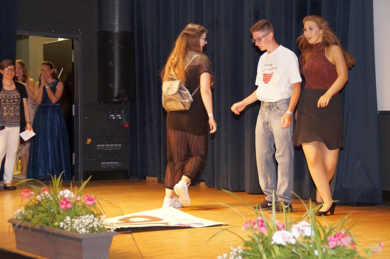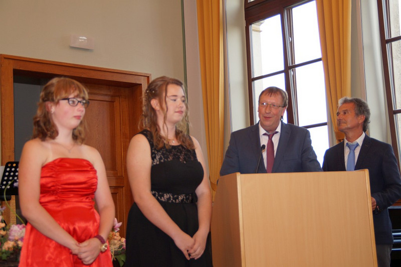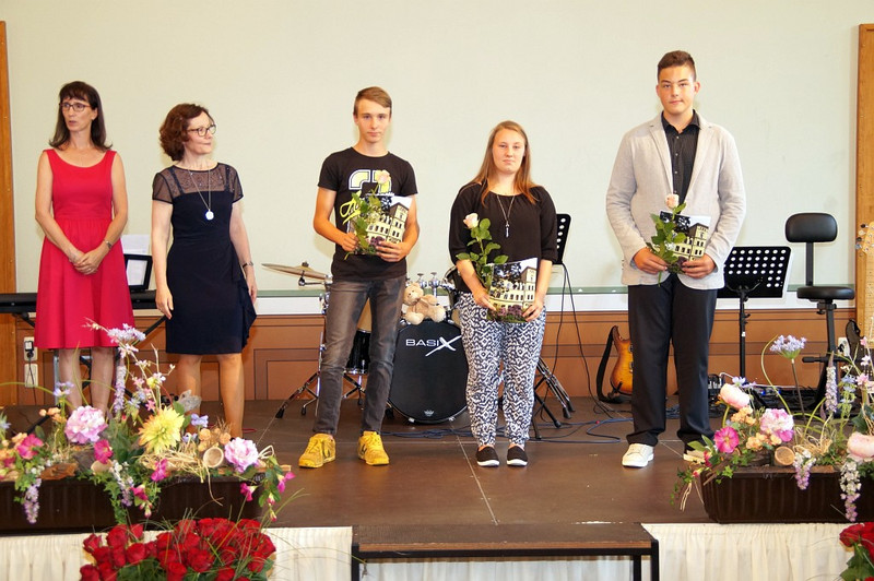Die Jahrgangsbesten trugen sich ins Ehrenbuch der Schule ein. Frau Hamann, die Vorsitzende des Fördervereins, zeichnete die besten Sportlerinnen und Sportler aus. Die Klassenleiterinnen und Klassenleiter verliehen nach einer bewegenden Laudatio den Titel "Härtwigschüler mit Herz" an die Schülerinnen und Schüler, die durch ihr besonderes Engagement für ihre Klasse über Jahre hinweg das Klassenklima positiv prägten: Julia Heinichen, Lena Scheinert, Michelle Lasse und Jessica Gühne.