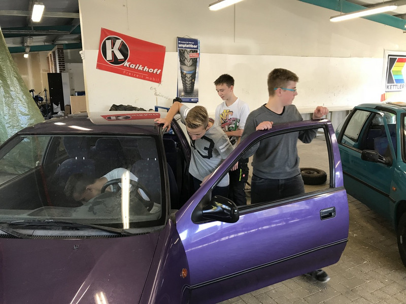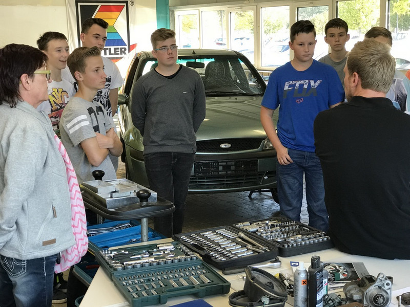 An den 10 Praktikumstagen durchlaufen die Jugendlichen verschiedene Berufsfelder, um ihre Vorstellungen für die spätere Berufswahl zu vervollkommnen. So erhalten sie u. a. Einblicke in die Bereiche KFZ, Holz, Metall, Frisör und Farbe.