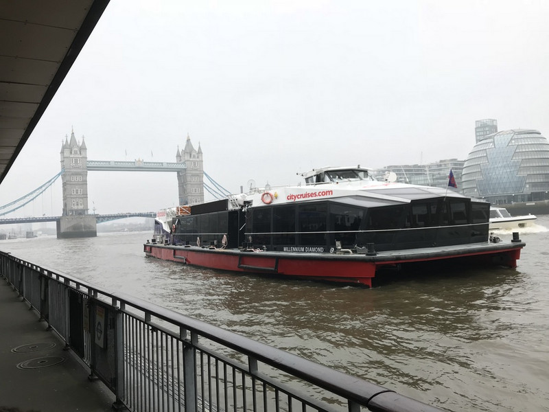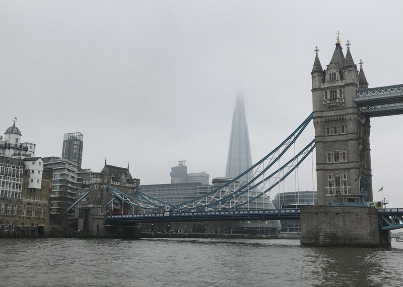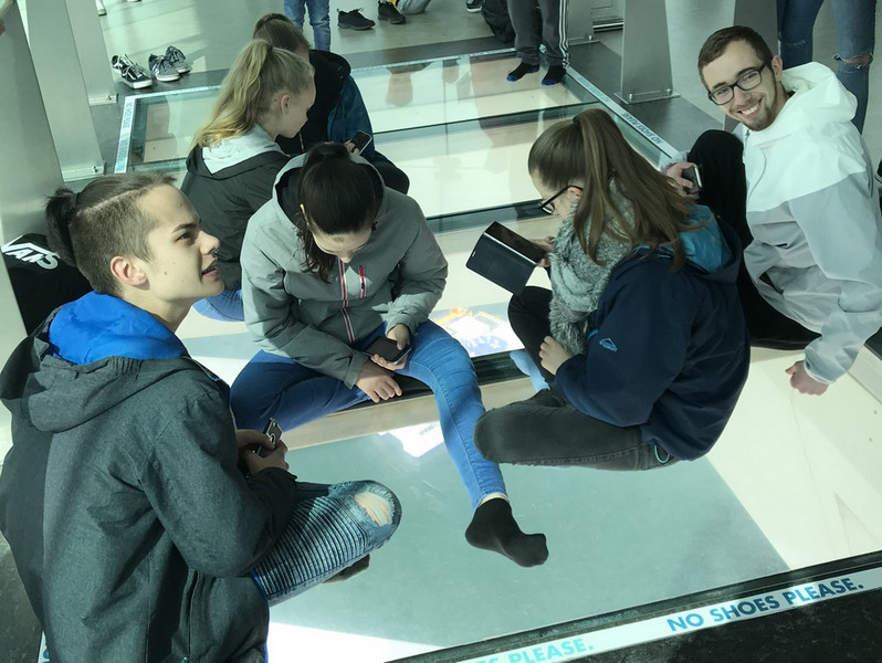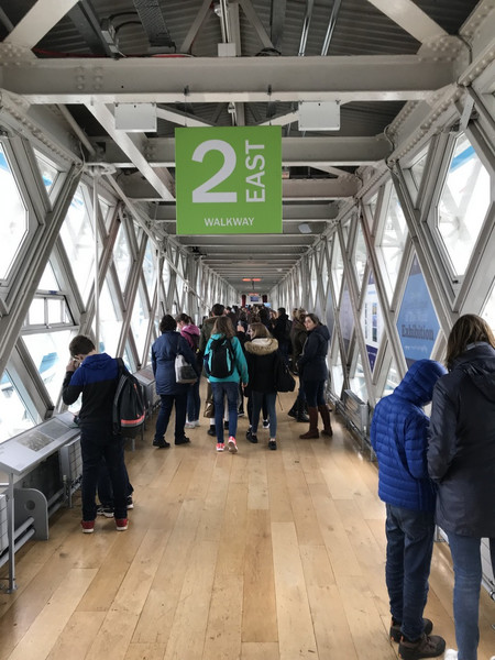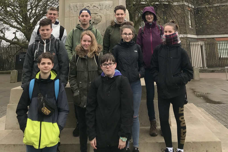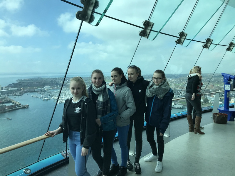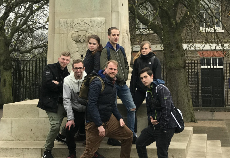 Es war Donnerstag geworden und das hieß Abschied von den Gasteltern, denn über London würde es wieder zurück nach Deutschland gehen! Die Hauptstadt empfing uns wie schon am Dienstag‚ very British‘, die Jacken wurden hoch geschlossen, die Schirme aber zum Glück nicht gebraucht. Angekommen im Stadtteil Greenwich begutachteten wir den Nullmeridian am königlichen Observatorium und begaben uns dann auf den weh hinunter zur Themse, um uns am alten Tee-Segler Cutty Sark in eine Freizeit zu verabschieden. Nach dieser schipperte die Reisegruppe zum Tower of London, um die dortige Tower Bridge zu besichtigen. Der im wahrsten Sinne des Wortes mit weit über 300 Metern eigentliche Höhepunkt des letzten Tages lag in den tief hängenden Wolken und leider blieb er auch dort, als wir mit den 2 superschnellen Liften bis auf gut 220 Meter über London gerast waren, um ‚The View‘ zu genießen – nur die schärfsten Adleraugen unter uns hatten tatsächlich einen Ausblick auf die Stadt… Pech für uns, aber wir drücken unseren Nachfolgern die Daumen, dass es ihnen vielleicht besser ergeht im nächsten Schuljahr!