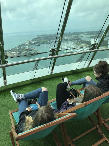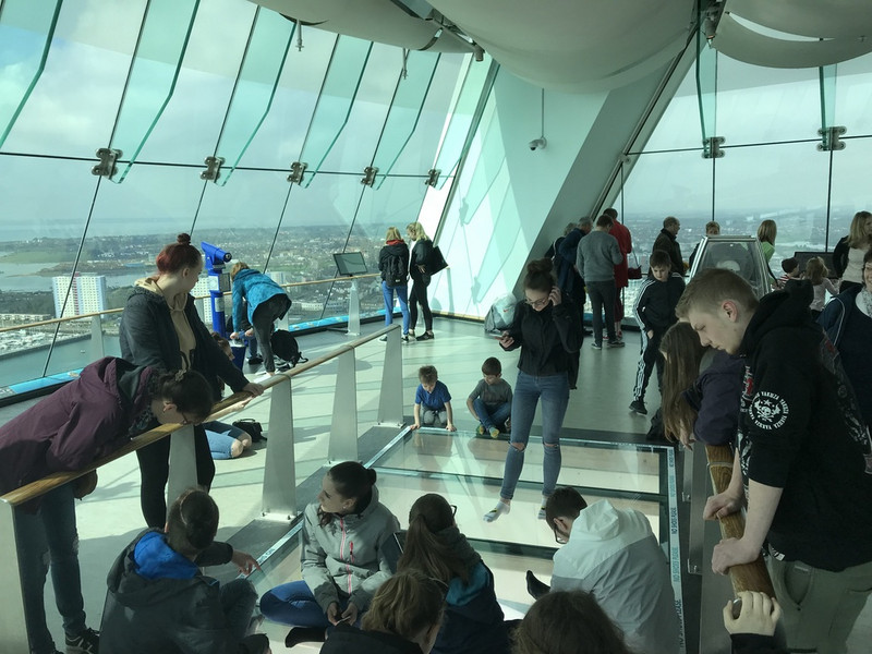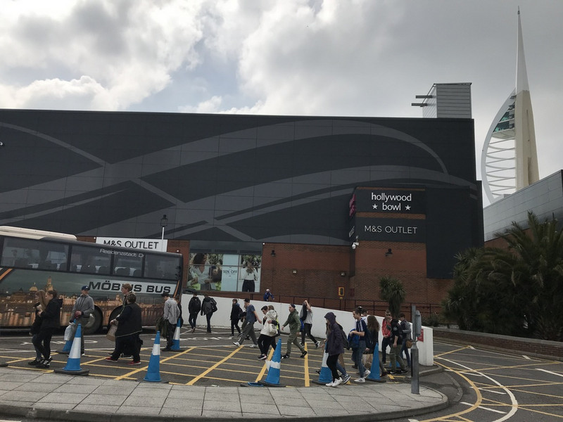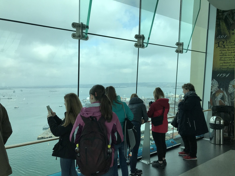 Der Mittwoch begrüßte uns am Morgen mit Dunst und Nebel, aber das war nur das Vorspiel für einen sonnigen Tag entlang von Englands Südküste! Zunächst reisten wir nach Portsmouth, wo wir uns auf den Aussichtsturm ‚Spinnaker Tower‘ begaben und so manche in 100m Höhe auf dem Glasboden Platz nahm, um einen besonderen Nervenkitzel zu erleben. Andere begnügten sich mit den herrlichen Ausblicken auf die Stadt, den Hafen und das Meer!