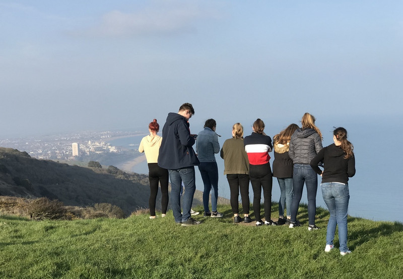Nachdem man nach durchfahrener Nacht am Anreise-Montag die mittelalterliche Stadt Canterbury kennengelernt hatte und auch im ‚Wohnort‘ Hastings mal einen Blick auf den Strand mit all seinen typisch britischen Besonderheiten riskierte, kam am Abend der spannendste Moment für alle – die Übergabe an die Gastfamilien!
