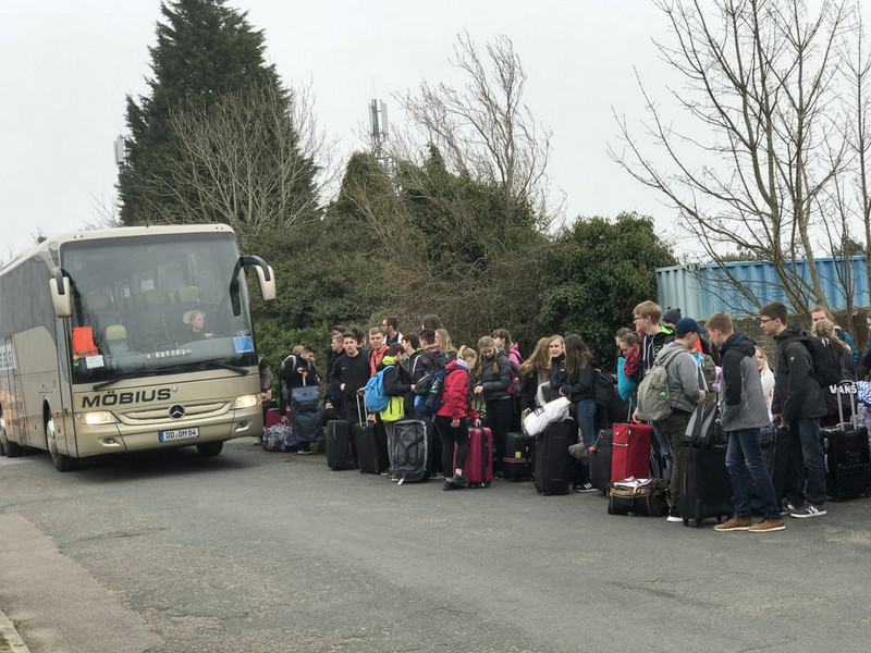 Nein, ganz so wie bei den Toten Hosen war es dann doch nicht für unsere Neuntklässler, die sich am 8. April auf die lang erwartete Reise nach England machten. Und ja, zurückgeschaut hat mal wieder so mancher am Busbahnhof in Oschatz, den gewohnten Verhältnissen zuhause etwas nachtrauernd und voller Ungewissheit, was ihn oder sie da erwarten wird jenseits des Ärmelkanals, über den es nach gut 10stündiger Busfahrt per Fähre ging.