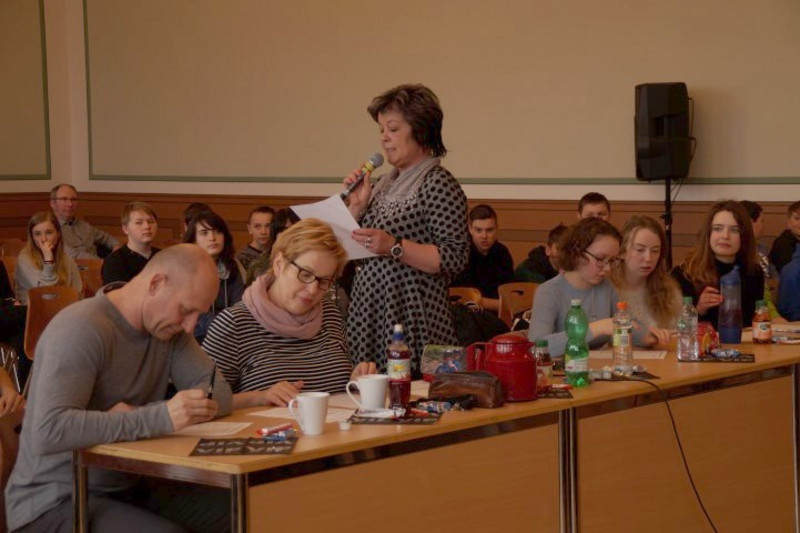 Nach diesen ersten Darbietungen ging die Veranstaltung in der Aula mit der Vorstellung der Jury, die aus Schülern und Lehrern bestand, weiter.
