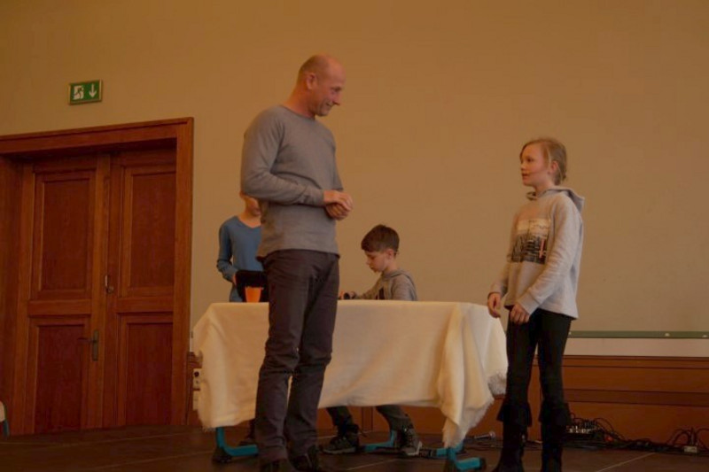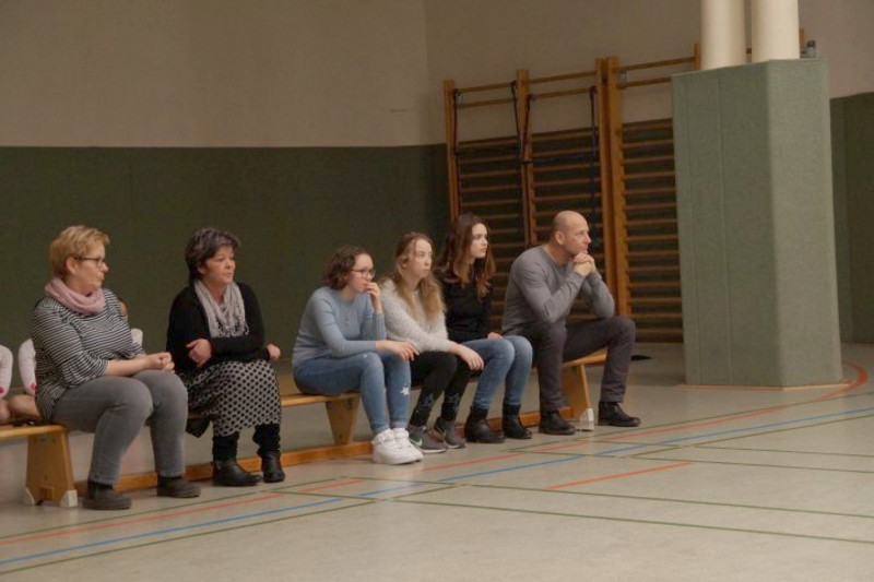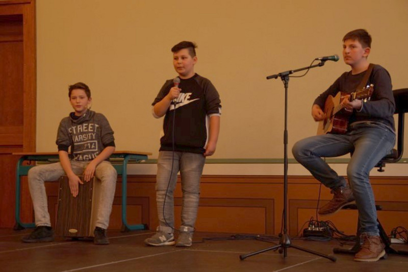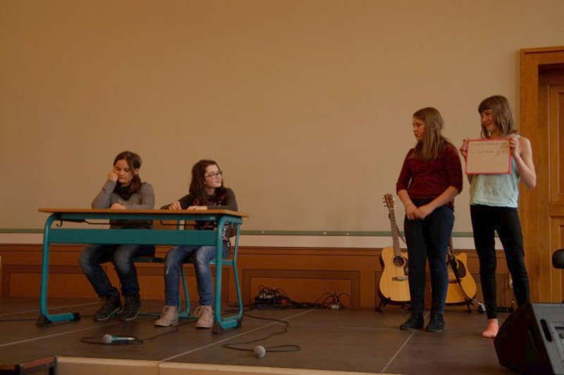 Der erste Beitrag war ein Sketch der Klasse 5c. Danach folgte ein ruhiges Klavierstück einer Schülerin der Klasse 7d. Schülerinnen der Klasse 7a sangen dem Publikum a cappella ein Lied. Auch die Klasse 5d hat musikalische Talente. Eine Schülerin zeigte ihr Können auf der Gitarre und anschließend spielte ein Klassenkamerad auf der Flöte. Abwechslung ins Programm brachten Vertreter der Klasse 5c durch eine Akrobatik-Performance und einen Klaviervortrag. Danach präsentierten Schülerinnen der Klassen 7d und 9b einen Tanz, weitere drei sangen ein modernes Lied. Diesen Auftritten wurde lauter Applaus entgegengebracht. Eine Zaubershow durch Schüler der 5c versetzte danach das Publikum ins Staunen.