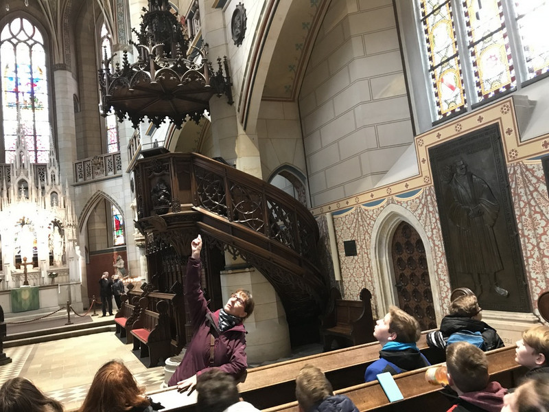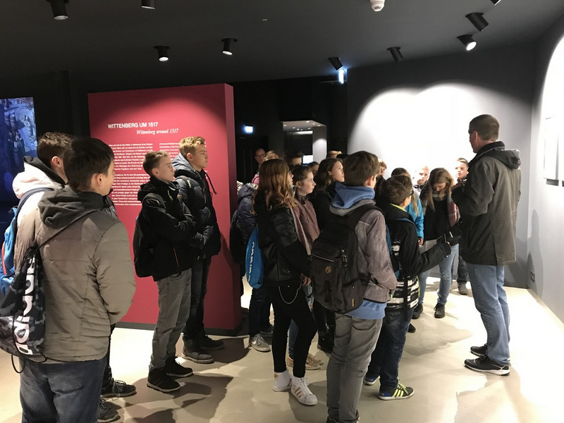 Anfang November begaben sich die Schüler der Klasse 8b auf die Spuren des großen Reformators Martin Luther. Bei einem Besuch in Wittenberg erlebten sie das Panorama-Gemälde 'Luther 1517' und nahmen auch die Schlosskirche mit der weltberühmten 'Thesen-Tür' in Augenschein. Ein Tipp für alle Härtwig-Schüler ab Klasse 7!
