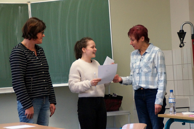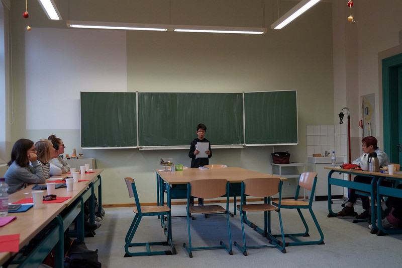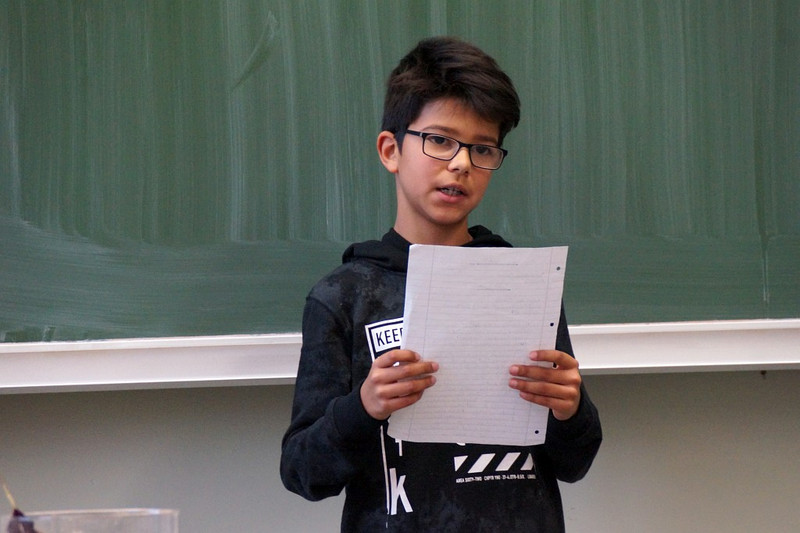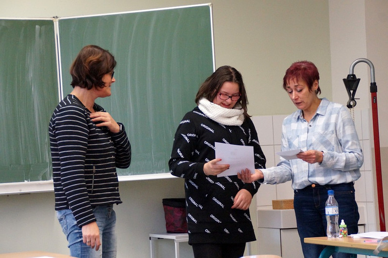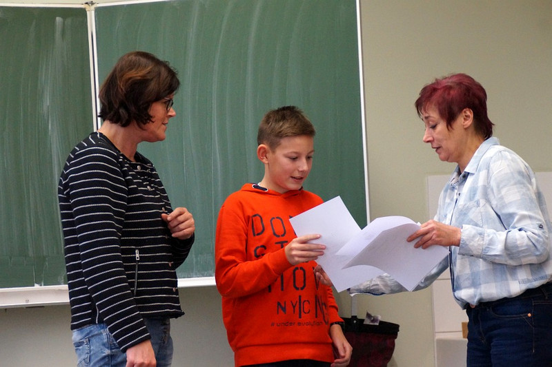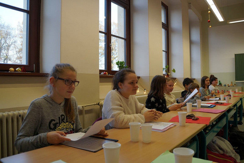 Nun gut, einen Superstar haben die Deutschlehrer der Härtwig-Schule vielleicht nicht entdeckt beim diesjährigen Talente-Wettstreit der jungen Rezitatoren, Autoren oder Buchvorsteller. Aber eine Menge mutiger Mädchen und Jungs, die sich tatsächlich aus der Deckung gewagt haben und sich in Vorausscheid und Finale einer Jury stellten und sich bewerten ließen! Und so waren die Besten der Besten ins Finale am 29. November eingezogen, und fast alle Deutschlehrer hatten sich versammelt und hielten die Punktekärtchen bereit, um Gedichtvorträge, selbst geschrieben Geschichten und Buchvorstellungen zu bewerten. Allesamt waren die Wettbewerber natürlich sehr aufgeregt, aber im Finale dabei gewesen zu sein, das war ja schon mal ein Erfolg! Per Los war entschieden worden, in welcher Reihenfolge die einzelnen Beiträge präsentiert werden sollten und am Ende gab es neben der einen oder anderen kleinen Enttäuschung zumeist ein Lächeln auf den Gesichtern unserer Talente, denn alle hatten sich wacker geschlagen und drei Kandidaten besonders gut- sie landeten auf den begehrten ersten drei Plätzen. So errang Denny Maxim Buschmann aus der Klasse 6 mit seinem ‚Knecht Ruprecht‘-Vortrag den 3. Platz, während Lena Hermann aus der 5. Klasse ein eigenes Gedicht vortrug und damit auf Platz zwei landete. Star des frühen Nachmittages war allerdings Melanie Tietze aus der 8. Klasse, deren sächsische Version des Erlkönigs Konkurrenz und Jury gleichermaßen begeisterte, sodass ihr der Sieg nicht zu nehmen war! Allen Teilnehmern ein großes Dankeschön und auf ein Neues im nächsten Schuljahr!