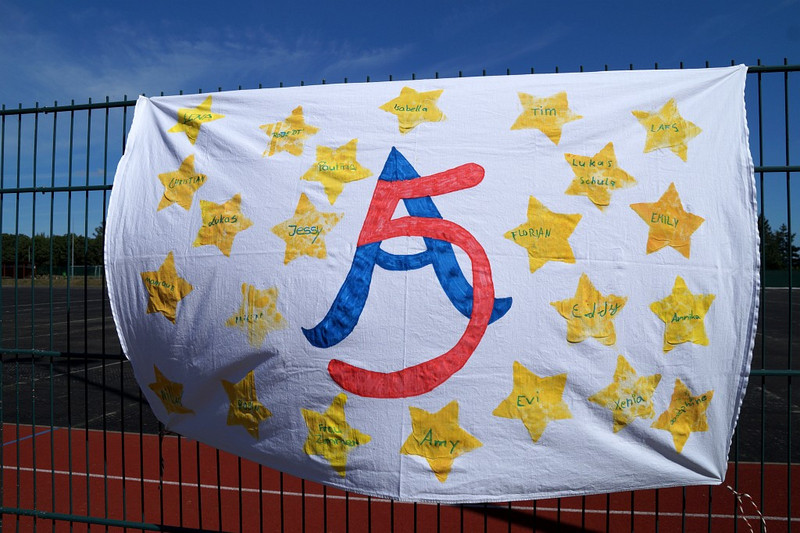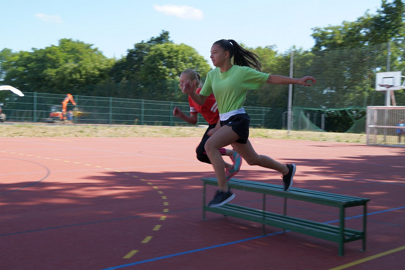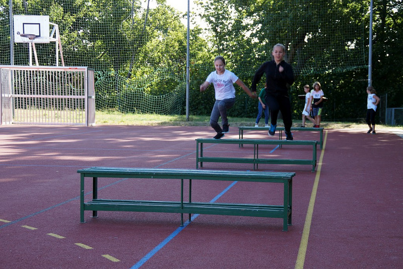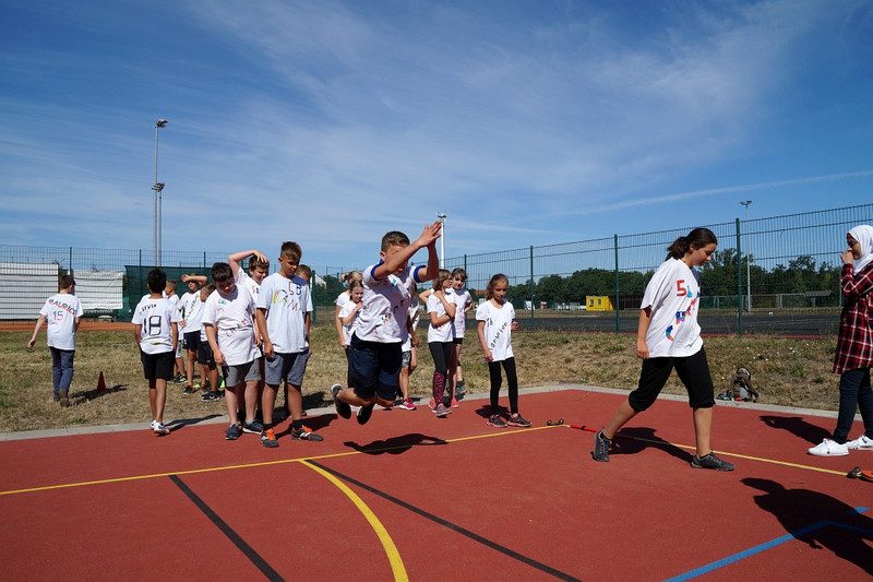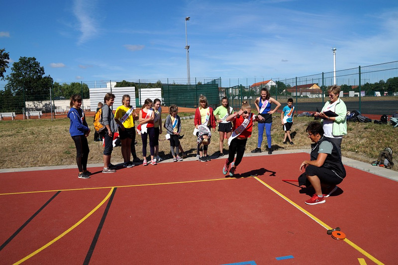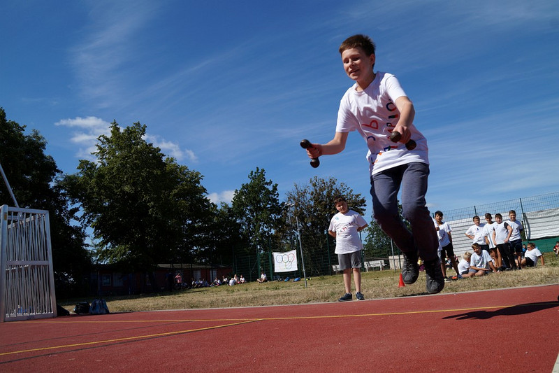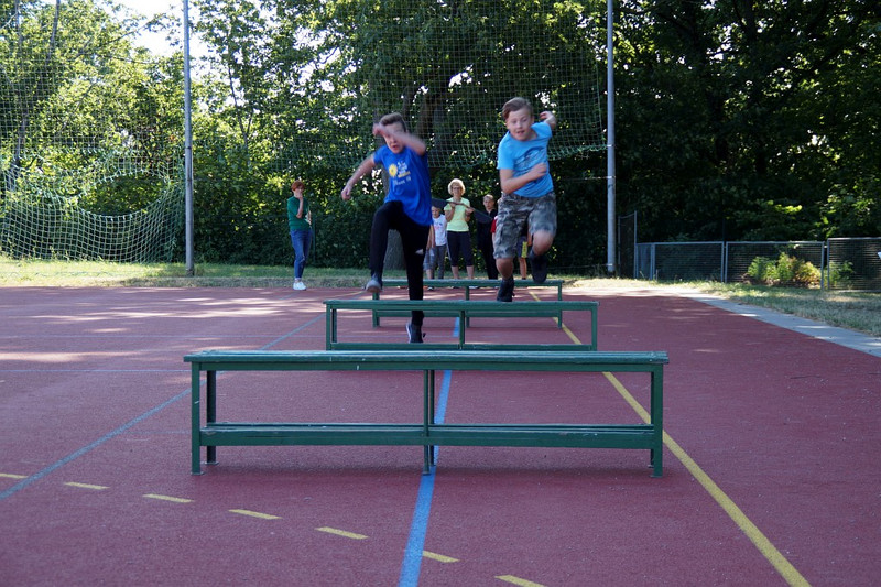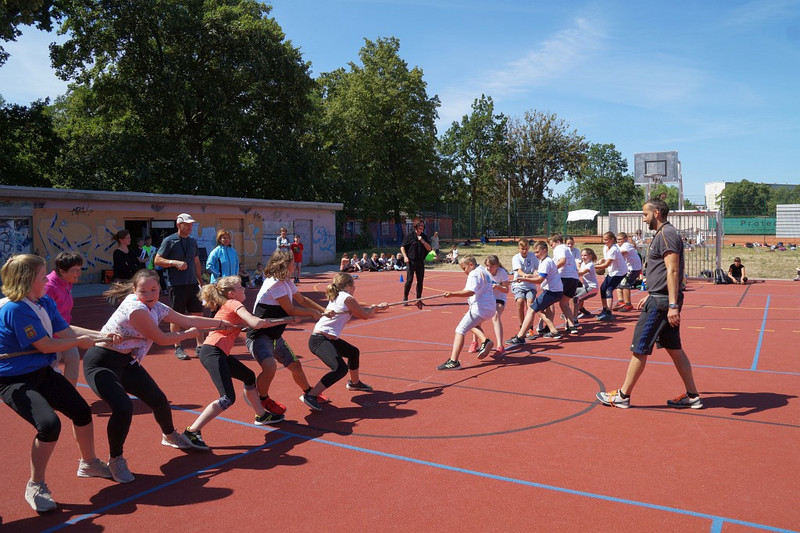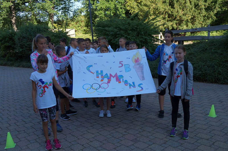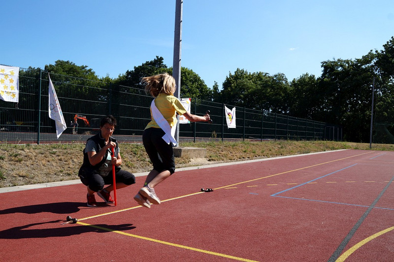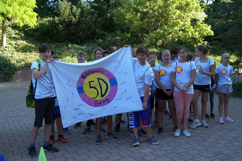 Am 04.07.2019 fand für die 5. Klassen der olympische Tag statt. Alle vier Teams hatten sich perfekt vorbereitet, mit eigener Flagge und passender Kleidung. In vier Einzel- und drei Mannschaftsdisziplinen wurden die besten Sportlerinnen und Sportler sowie das beste Team gesucht. Diesen Titel holte sich unter großem Jubel die Klasse 5d. Herzliche Glückwünsche an die Siegerinnen und Sieger, alle Platzierten wie auch ein großen Dank an die Organisatoren der Veranstaltung.