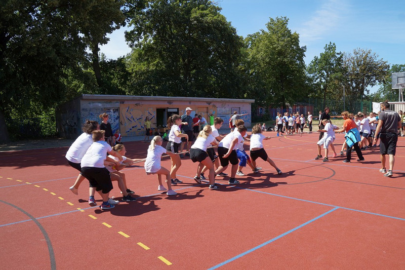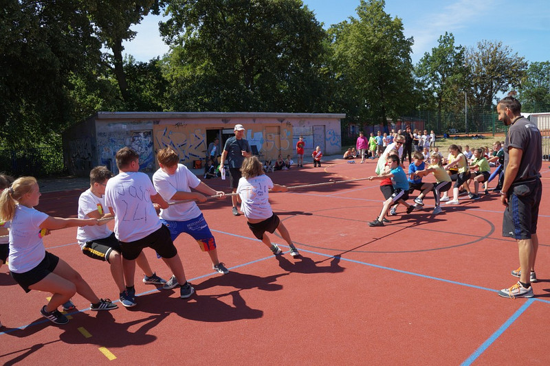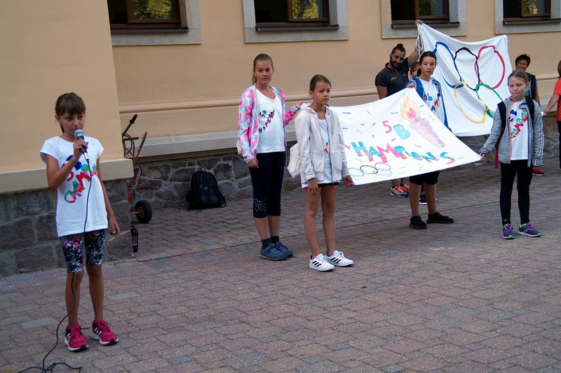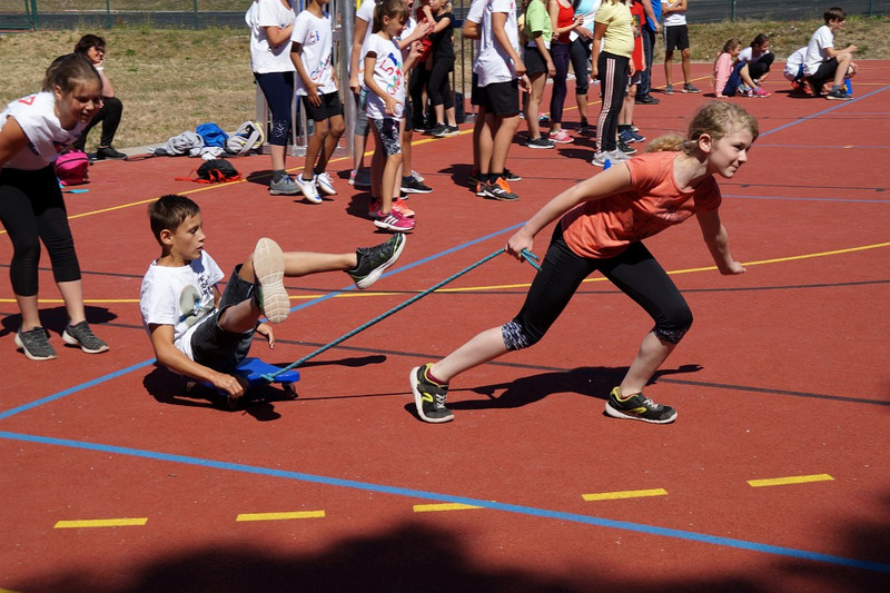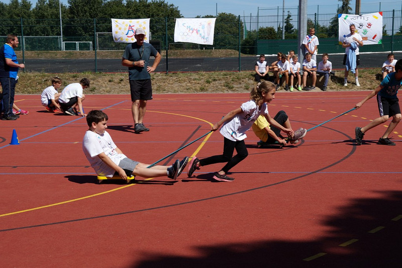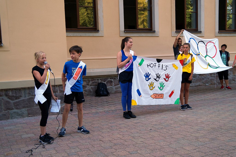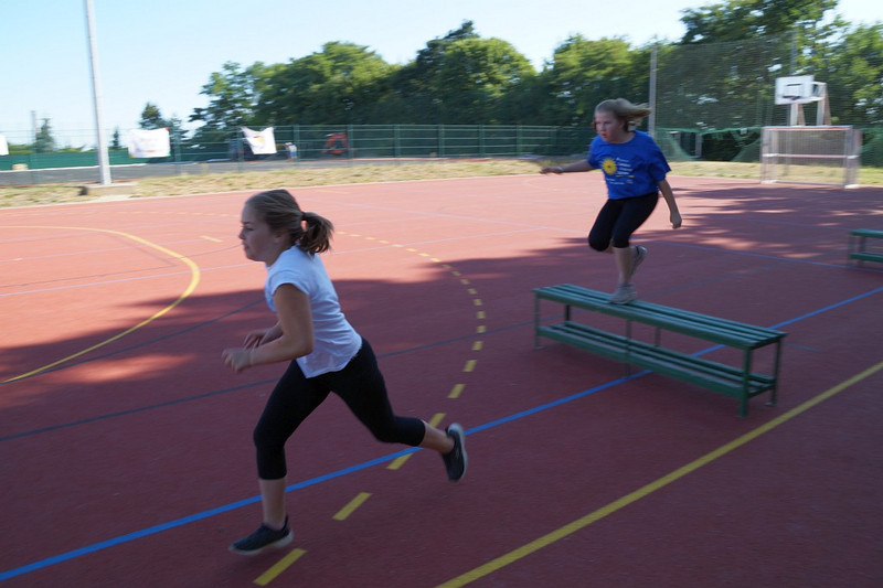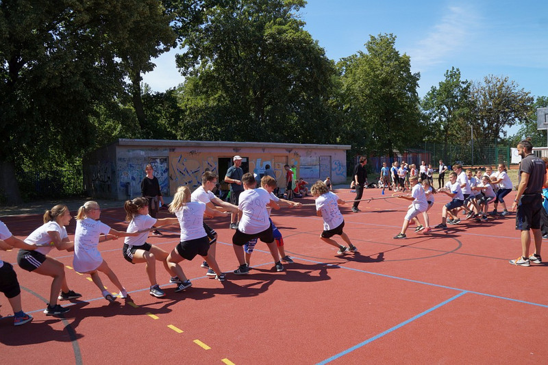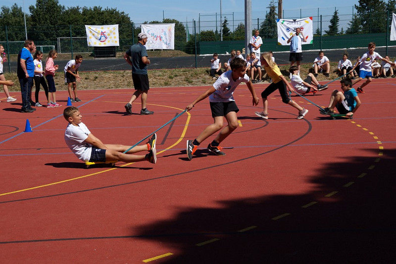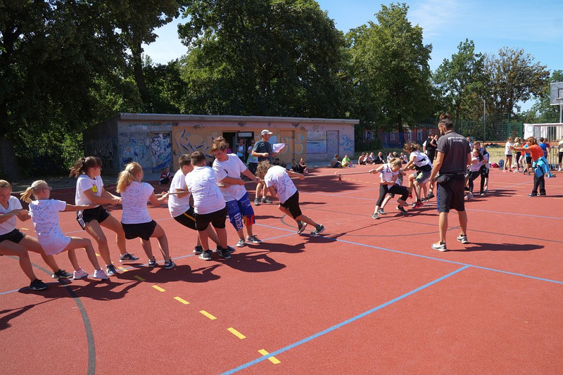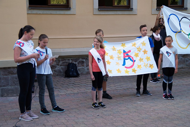 Am 04.07.2019 fand für die 5. Klassen der olympische Tag statt. Alle vier Teams hatten sich perfekt vorbereitet, mit eigener Flagge und passender Kleidung. In vier Einzel- und drei Mannschaftsdisziplinen wurden die besten Sportlerinnen und Sportler sowie das beste Team gesucht. Diesen Titel holte sich unter großem Jubel die Klasse 5d. Herzliche Glückwünsche an die Siegerinnen und Sieger, alle Platzierten wie auch ein großen Dank an die Organisatoren der Veranstaltung.