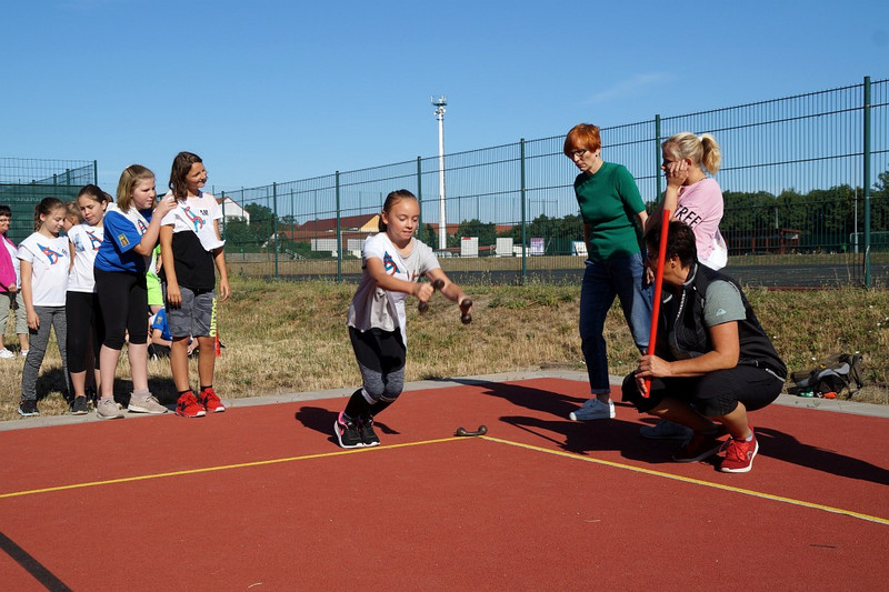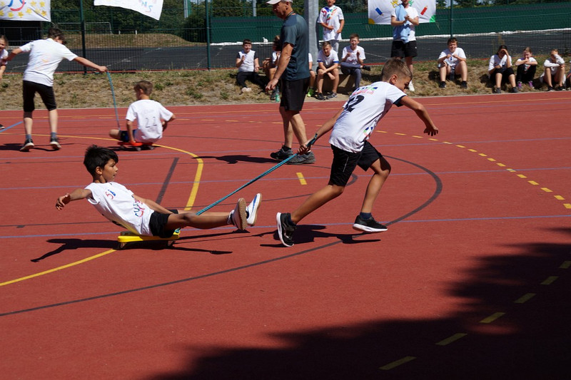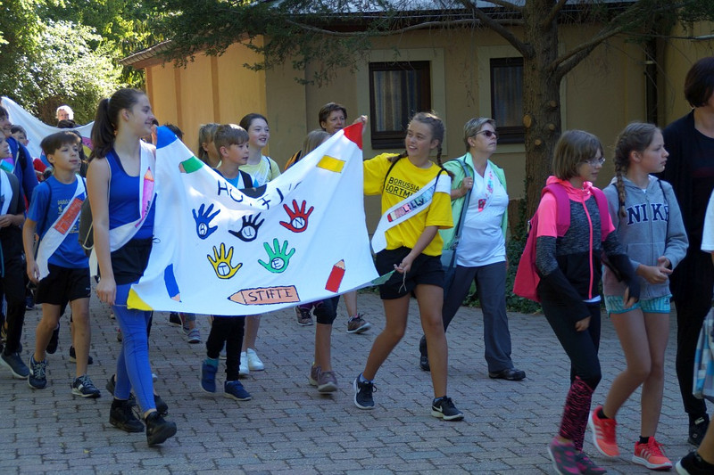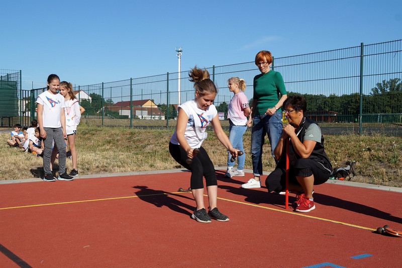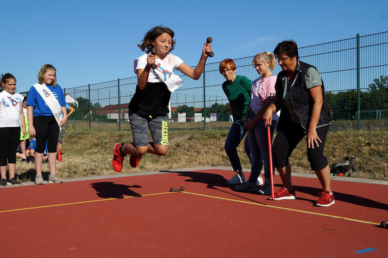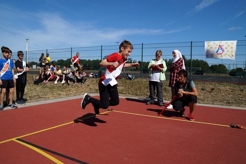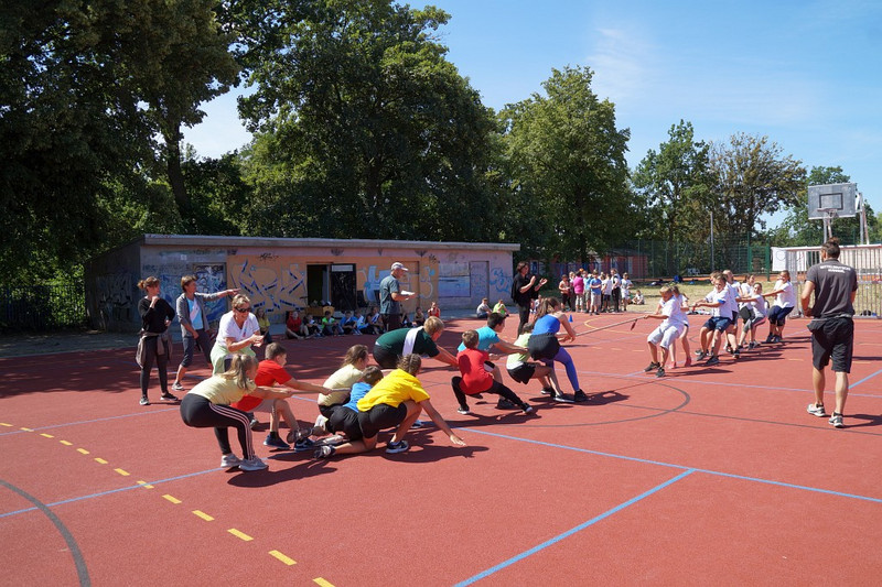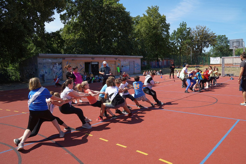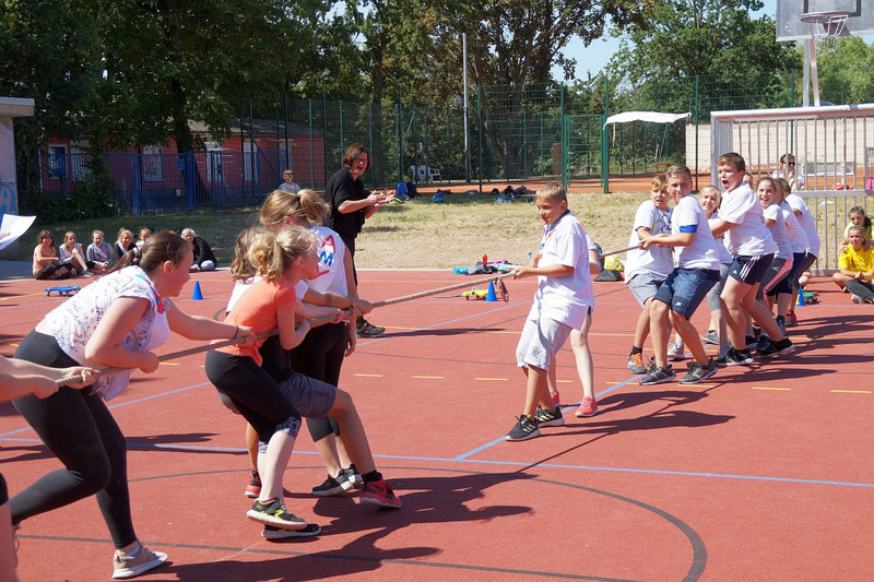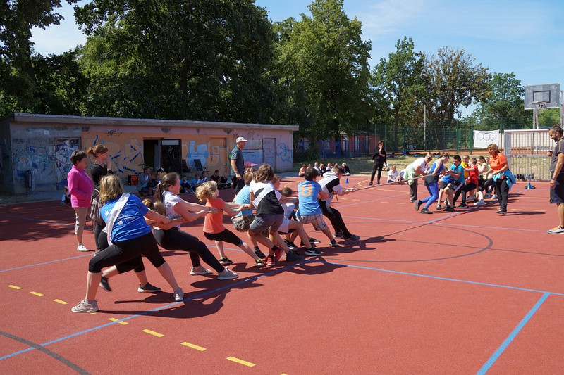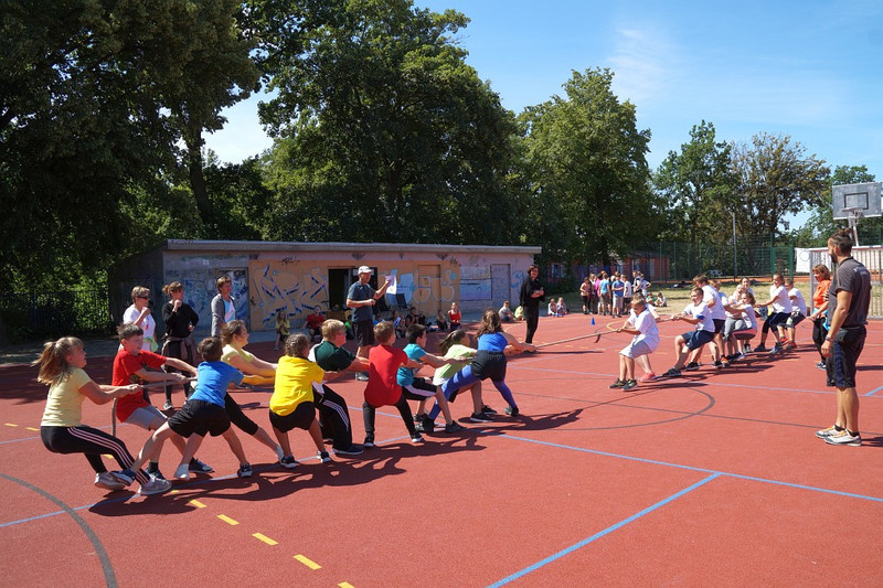 Am 04.07.2019 fand für die 5. Klassen der olympische Tag statt. Alle vier Teams hatten sich perfekt vorbereitet, mit eigener Flagge und passender Kleidung. In vier Einzel- und drei Mannschaftsdisziplinen wurden die besten Sportlerinnen und Sportler sowie das beste Team gesucht. Diesen Titel holte sich unter großem Jubel die Klasse 5d. Herzliche Glückwünsche an die Siegerinnen und Sieger, alle Platzierten wie auch ein großen Dank an die Organisatoren der Veranstaltung.
