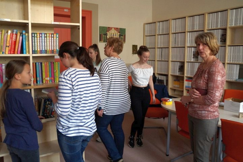 Nach über 1,5 Jahren aufräumen, ausräumen, einräumen, sichten und katalogisieren ist es nun soweit und die Bibliothek ist eröffnet. Noch sind einige Fächer oder Regale leer, weshalb sich alle Verantwortlichen über fleißige Bücherspenden für 10-16 Jährige freuen würden. Zukünftig sind weitere Erneuerungen geplant. Reinschauen lohnt sich. Kostenlos ausleihen, lesen und wiederbringen darf jeder interessierte Schüler unter der Voraussetzung, dass die Eltern damit einverstanden sind, da es auch Ausweise geben wird.