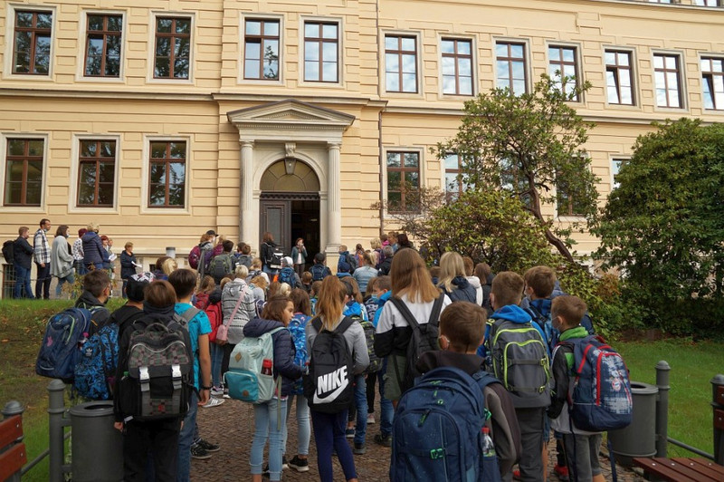 Frau Wasiak läutete pünktlich zum Schulstart ihre alte Schulglocke und hatte sofort die Aufmerksamkeit der Mädchen und Jungen auf ihrer Seite. Sie begrüßte alle ganz herzlich an unserer Schule und wünschte ihnen viel Spaß und Neugier beim Lernen. Damit das auch gleich gut klappt, übernahm Frau Klöditz die Aufteilung der neuen 5. Klassen. Nacheinander nahmen Frau Oehler, Frau Thümmler, Frau Terpitz und Frau Hegewald gemeinsam mit den jeweiligen Zweitklassenlehrern ihre Klassen in Empfang. Natürlich mit Mund-Nasen-Schutz ausgestattet, begann dann der erste Schultag. In den ersten drei Tagen steht das gegenseitige Kennenlernen auf dem Stundenplan. Ab Donnerstag beginnt dann der reguläre Unterricht. Wir wünschen allen ein gutes Gelingen.
