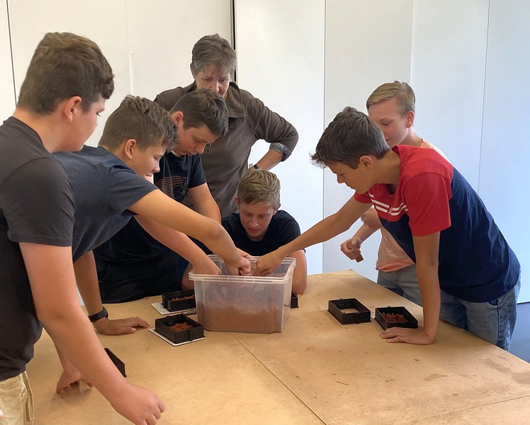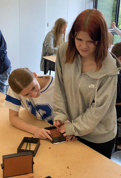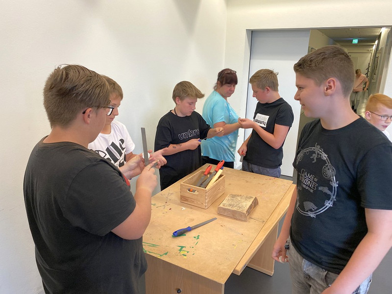 Nach einer kurzen Führung mit jeder Menge Informationen und interessanten Gedankenspielen rund um den Fund der Himmelsscheibe, die man übrigens normalerweise im Museum in Halle besichtigen kann, sahen die Schüler eine Show im hauseigenen Observatorium, bevor es in den Workshop ‚Zinngießen‘ ging. Dort konnte sich jeder seine eigenen Mini-Himmelsscheibe zum Mitnehmen aus Zinn herstellen – Step by Step unter Anleitung und durchaus mit Arbeit verbunden!