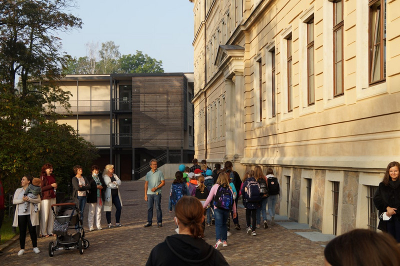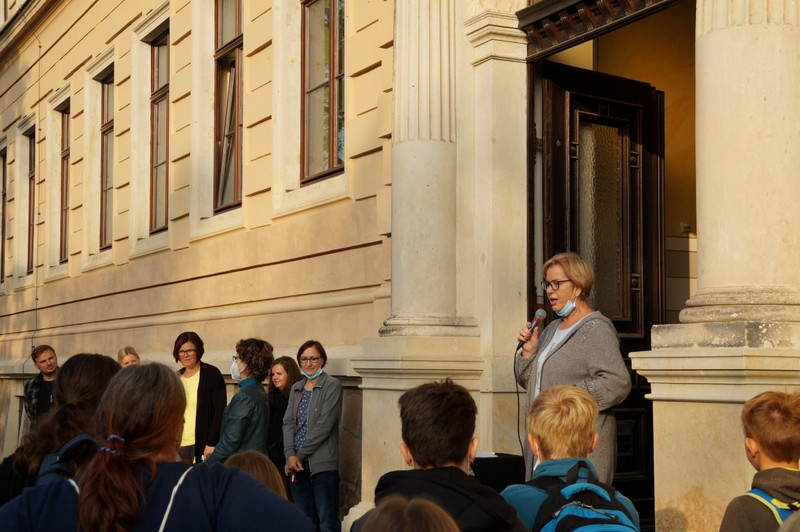 Frau Wasiak begrüßte alle ganz herzlich an unserer Schule und wünschte ihnen viel Spaß beim Lernen. Dabei betonte sie, dass sowohl das altehrwürdige Gebäude als auch die auf dem Schulhof stehende Lutherbuche bereits ganz viele Schülerinnen und Schüler mit genau den erwartungsvollen Augen wie die der diesjährigen Neuen gesehen haben. Allen gemeinsam sei die Neugier auf das Kommende. Die erste Neugier konnte Frau Klöditz direkt im Anschluss stillen. Sie übernahm die Vorstellung der neuen 5. Klassen. Nacheinander nahmen Frau Seydewitz, Herr Pawolleck und Frau Sysenko gemeinsam mit den jeweiligen Zweitklassenlehrern ihre Klassen in Empfang. Damit konnte der erste Schultag wirklich beginnen. In den ersten beiden Tagen steht das gegenseitige Kennenlernen auf dem Stundenplan. Natürlich wird dabei auch das Schulgebäude erkundet und im Schatten der Lutherbuche auf dem Schulhof in den großen Pausen ausgeruht. Ab Mittwoch beginnt dann der reguläre Unterricht für die 5. Klassen. Wir wünschen allen ein gutes Gelingen.