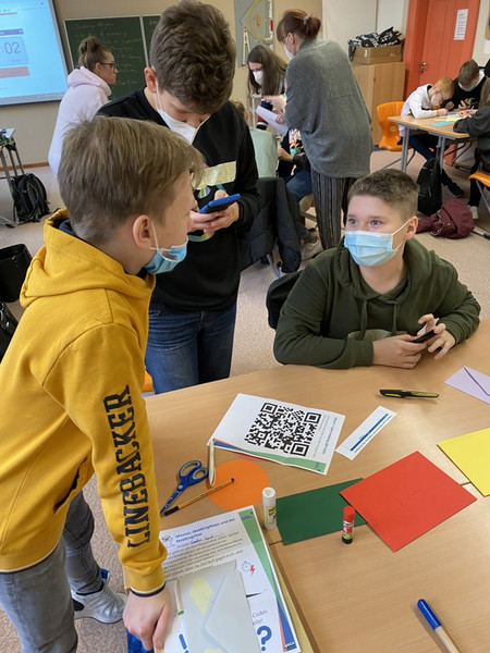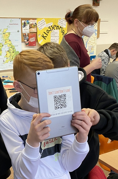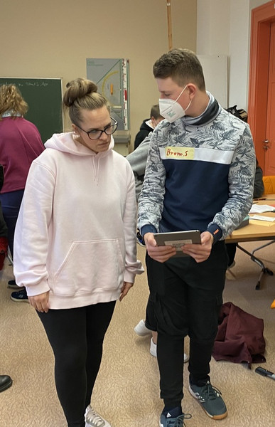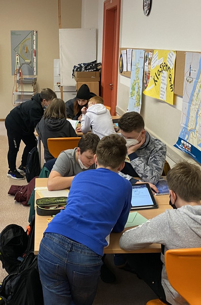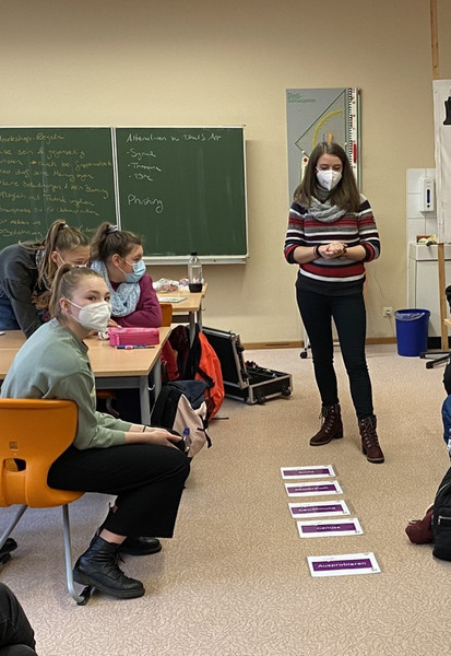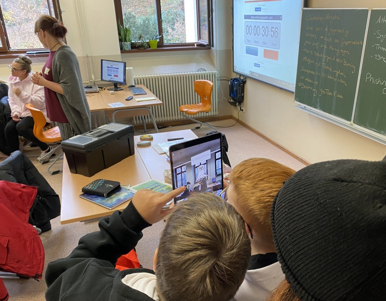 Durch einen kurzen Film über einen ins schlimmste Mobbing abgedrifteten Klassen-Chat führte die Referentin unsere Schüler dann an die finale Escape-Aufgabe heran, die in Gruppen in Angriff genommen wurde und noch einmal alles abverlangte, um die Zahlen-Schlösser an der einem Werkzeugkasten doch sehr ähnlich sehenden ‚Schatztruhe‘ zu knacken und den Sieger-Preis herauszuholen. Handy, Tablet und nicht zuletzt der eigene Grips waren gefragt, um alle Aufgaben innerhalb der gegebenen 90 Minuten zu lösen – und fast alle Teams schafften es in der Zeit!