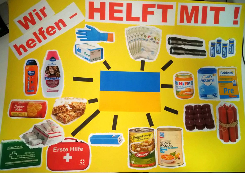 In der Zeit vom 09.03.2022 bis 17.03.2022 fand in unserer Schule eine Spendenaktion für die Menschen in der Ukraine statt. Wir möchten uns bei allen Schülern, Eltern und Lehrern bedanken, die sich daran beteiligt haben.