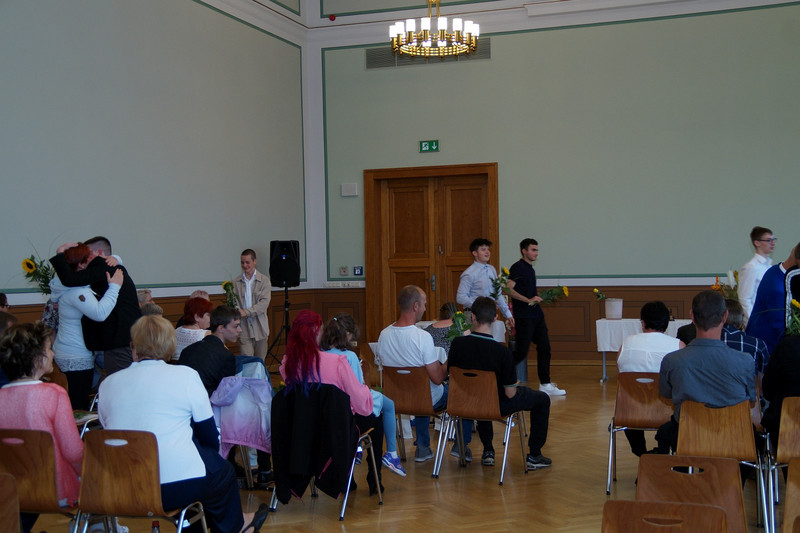 Am Freitag, dem 30.06.2023, fand in der Aula der Schule die feierliche Übergabe der Abschlusszeugnisse an die Absolventinnen und Absolventen im Hauptschulbildungsgang statt. Den Preis "Härtwig-Schülerin mit Herz" erhielt Kim Maiwald. Als Klassenbester trug sich Lucas Schlehaber ins Ehrenbuch der Schule ein. Wir freuen uns über die guten Ergebnisse und wünschen für den weiteren Lebensweg alles Gute.