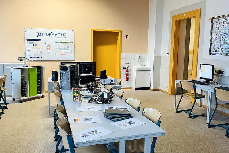 Erstmals öffnete die Robert-Härtwig-Schule an einem Freitagnachmittag ihre großen Flügeltüren für die zukünftigen Fünftklässler und ihre Familien. Am Freitag, dem 27.01.2023, bestand von 15 bis 18 Uhr für unsere Gäste die Chance, hinter die Kulissen der Oberschule zu schauen. Viele neugierige Gesichter konnten sich über die neuen und die bereits aus der Grundschule bekannten Fächer informieren. Es gab jede Menge zum Anschauen und vor allem zum Mitmachen. Die GTA-Gruppe der Schulbibliothek gewährte Einblick in die sonst immer nur mittwochs geöffnete Bibliothek. Der Förderverein informierte über die vielfältigen Möglichkeiten der Unterstützung. Auch die Schulsozialarbeit ermöglichte den zahlreichen Besucherinnen und Besuchern interessante Eindrücke ihrer Arbeit. In der Turnhalle konnte die Vorführung der Einradgruppe bestaunt werden. Aber nicht nur neue Gesichter waren zu sehen. Auch viele ehemaligen Schülerinnen und Schüler genau wie Lehrerinnen und Lehrer nutzen die Gelegenheit, an ihre alte Schule zurückzukehren und so manche neuen Dinge zu entdecken.
