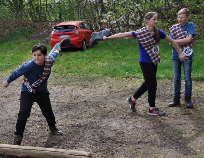 Ein Platz auf dem Sieger-Podest war also beiden sicher, aber vom Tauziehen übers Baumstammwerfen bis hin zum ‚Farmer’s Walk‘ musste sich erweisen, wem der Wanderpokal des Fördervereins der Robert-Härtwig-Schule Oschatz in diesem Schuljahr gehören sollte! Rechtzeitig zu Wettkampfbeginn zeigte auch der launische Wettergott ein Einsehen mit den Nachwuchs-Athleten und die Sonne schien auf das spannende Geschehen, ein knappes Rennen zeichnete sich ab und angefeuert von den Clans ging es um jeden Meter.