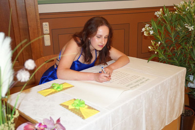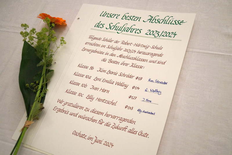 Wie bereits am Vortag konnten sich auch heute die Klassenbesten Leni Wollny und Iven Horn in das Ehrenbuch der Schule eintragen und wurden vom Förderverein dafür prämiert. Über die Auszeichnung "Härtwig-Schüler mit Herz" konnten sich Leni Wollny, Leni Förster und Max Thomas freuen.