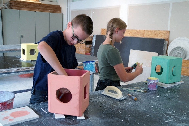 Sie erhalten Einblicke und erste theoretische und praktische Erfahrungen in den Bereichen Fliesen, Hochbau, Friseur, Farbe, Büro, KfZ, Trockenbau, Erzieher und Zweirad in der ersten Woche. In der zweiten Woche kommen die Bereiche Elektro, Holz, Metall und Kunststoff hinzu. Nach zweieinhalb Tagen wird in die nächste Abteilung gewechselt, sodass am Ende viele neue Erfahrungen gemacht werden konnten.