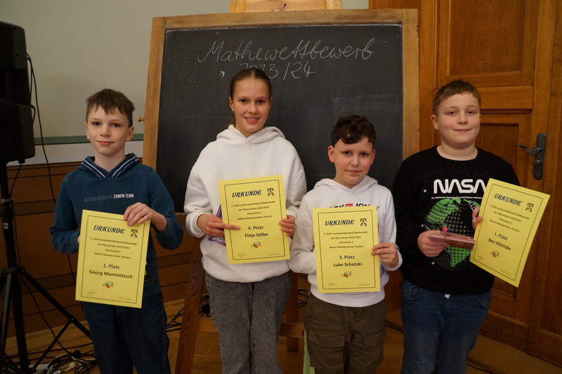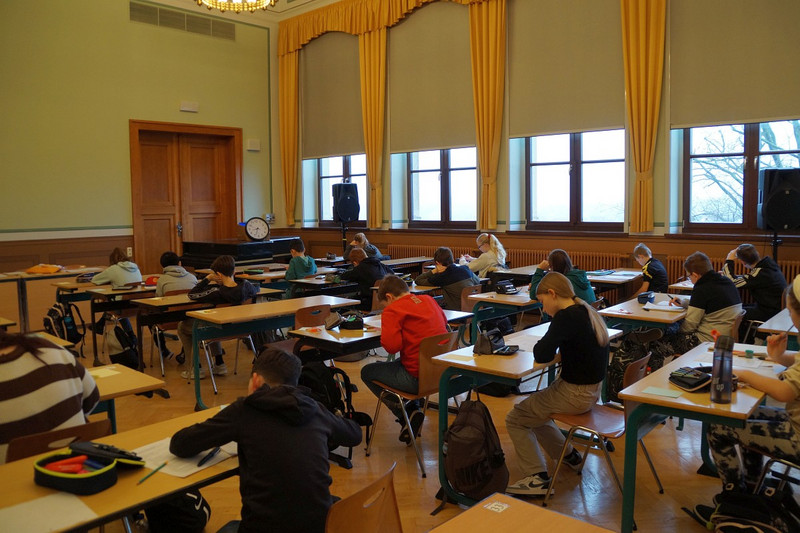 In den vergangenen Wochen bearbeiteten die Schüler der Klassen 5 bis 8 im Unterricht die Aufgaben der ersten Stufe des Mathematikwettbewerbs an Oberschulen in Sachsen. Die dort ermittelten Jahrgangsbesten versammelten sich am 08.02.2024 in der Aula, um sich den mathematischen Herausforderungen der zweiten Stufe zu stellen.