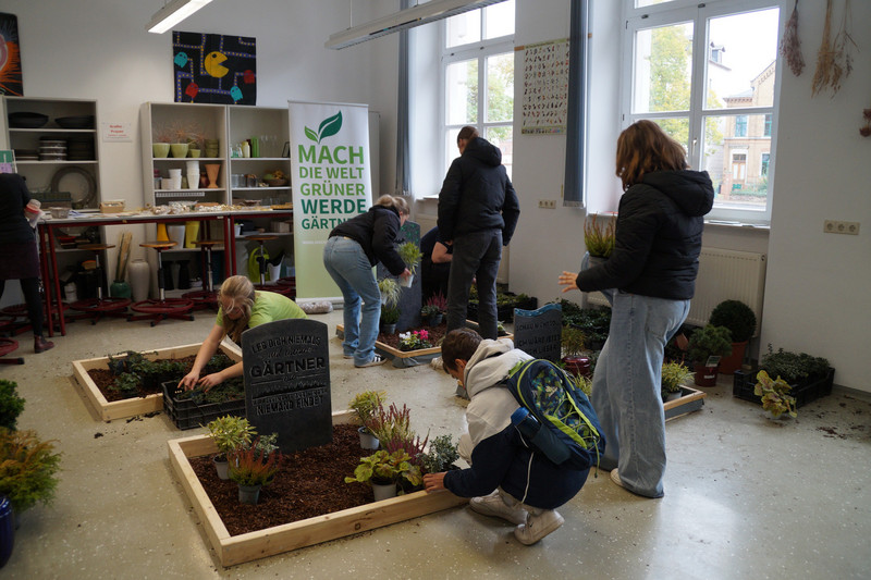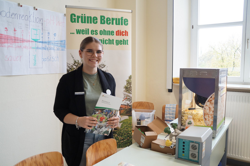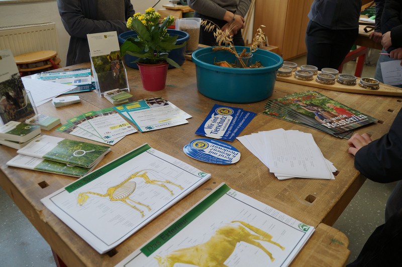 Nach einem freundlichen Empfang und einer Einweisung erkundeten die Schüler die 10 Stationen, in denen die unterschiedlichsten grünen Berufe vorgestellt wurden, z.B. Gärtnerei/Friedhofsgärtnerei, Gärtner im Obstbau oder Baumschule, Florist, Fischwirt, Landwirt, Fachkraft Agrarservice, Technik Gartenbau, Technik Landwirtschaft, Pferdewirt, Forstwirt oder Tierwirt. Dabei handelte es sich um Berufe, die in unserer Region auch ausgebildet werden.