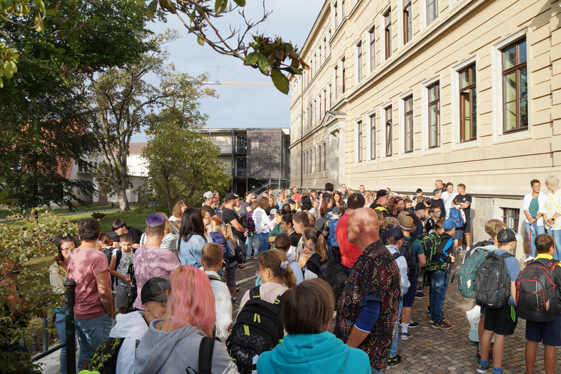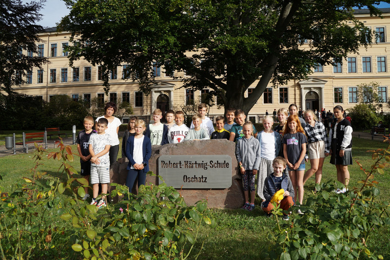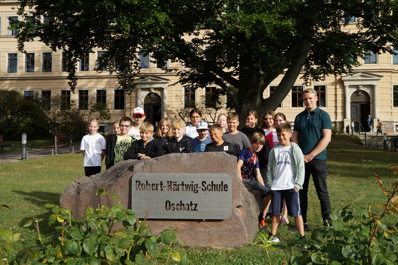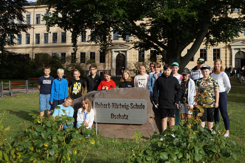Insgesamt starteten 83 Schüler und 4 Klassenlehrer der Klassenstufe 5 gemeinsam in das neue Schuljahr an der Robert-Härtwig-Schule. In den ersten drei Tagen wurden in den 5. Klassen Projekte durchgeführt, um sich untereinander kennenzulernen und das Schulhaus zu erkunden. Bei einer Schulrallye konnten die Schüler auch die Sekretärin Frau Koine kennenlernen, die, mit Stift und Stempel bewaffnet, die ersten Anfragen der Schüler direkt bearbeiten konnte. Auch wurden die farblich vielfältig vorhandenen Hefter gemeinsam für das neue Schuljahr vorbereitet und die ersten Blätter eingeheftet. Die Schulsozialarbeiter der Schule konnten sich ebenfalls in allen Klassen vorstellen und - teils spielerisch - von ihrem Arbeitsalltag an der Schule berichten. Am Mittwoch ging es für die 5. Klassen auf zum 1. Wandertag. Entlang der Döllnitz wurden Radfahrer mit LaOla-Wellen vorbeigelassen und Kennenlernspiele im Klassenverband durchgeführt.