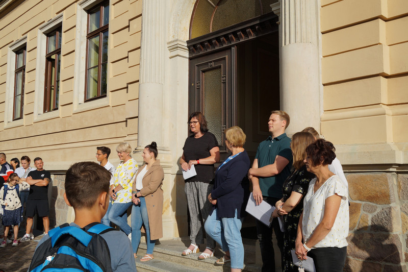 Die Aufregung rund um den 1. Schultag des neuen Schuljahres war am 05.08.2024 schon in den frühen Morgenstunden zu spüren. Bereits eine Stunde vor offiziellem Beginn trafen die ersten Fünftklässler der Robert-Härtwig-Schule mit ihren Eltern auf dem Schulhof ein. Pünktlich 7.50 Uhr traten zur Begrüßung dann auch die Schulleitung sowie einige Lehrer der Schule hinaus auf den Schulhof. Der erste Schultag an der neuen Schule begann mit viel Sonnenschein, leuchtenden Kinderaugen und neugierigen Gesichtern auf allen Seiten.