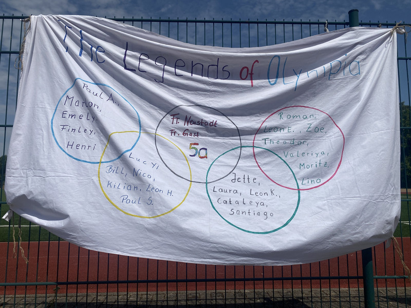 Ein weiteres sportliches Highlight folgte in der letzten Schulwoche für die Klassenstufe 5. In Form eines Klassenstufenprojekts wurde der „Olympische Tag“ zunächst klassenintern an drei Tagen vorbereitet und schließlich am Donnerstag, 19.6., durchgeführt. Jede Klasse trat als Mannschaft gegen die anderen Klassen der Jahrgangsstufe an.