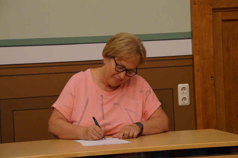 Am Anfang erfolgte in der Aula der Oberschule die offizielle Eröffnung des WTH-Unterrichts durch die SL des Berufsschulzentrums und der Robert-Härtwig-Schule. Beide unterschrieben gemeinsam den Kooperationsvertrag. Durch diesen Vertrag wird es den Schülerinnen und Schülern möglich sein, den Unterricht praxisnah direkt in den Ausbildungsräumen des BSZ in Oschatz durchzuführen.