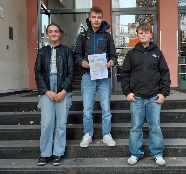 Am 24.10.2024 vertraten unsere besten Geographen Alice Bechert (7d), Lenny Lohse (10c) und Till Weidemann (6c) (im Bild von links) unsere Schule im Regionalausscheid der Geo-Olympiade in Grimma. Mehr...