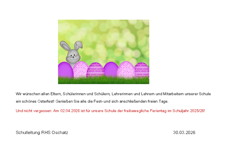 Bitte nehmen Sie das Schreiben der Schulleitung zur Kenntnis.