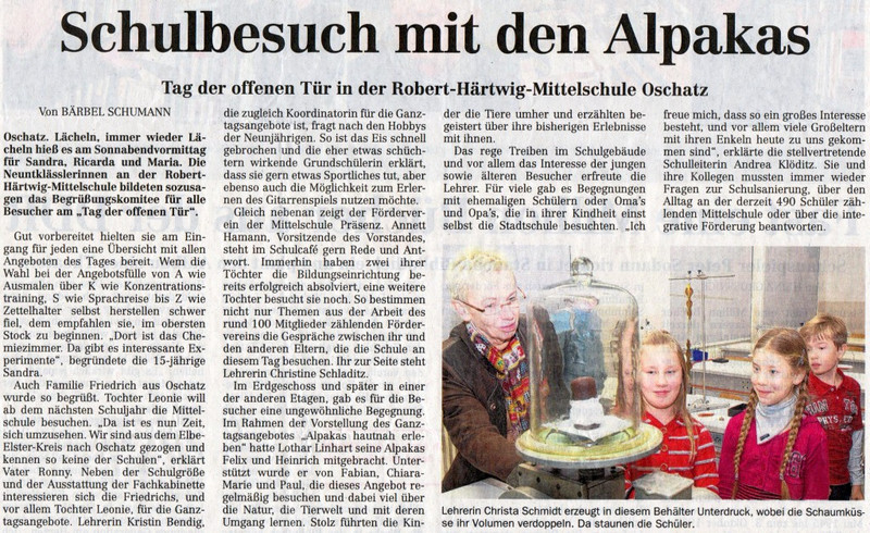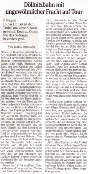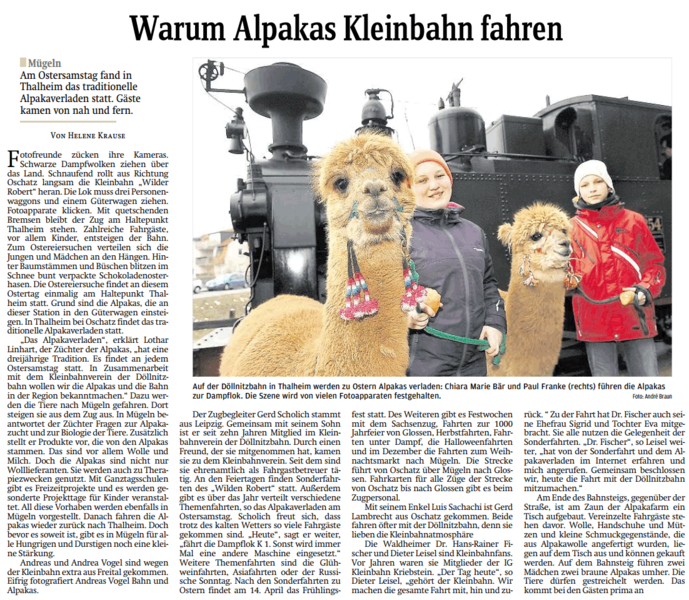 02.04.2013: Döbelner Anzeiger: "Warum Alpakas Kleinbahn fahren"