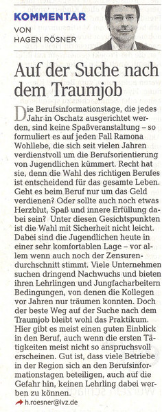 11.11.2015: OAZ berichtetet über die Berufsinformationstage