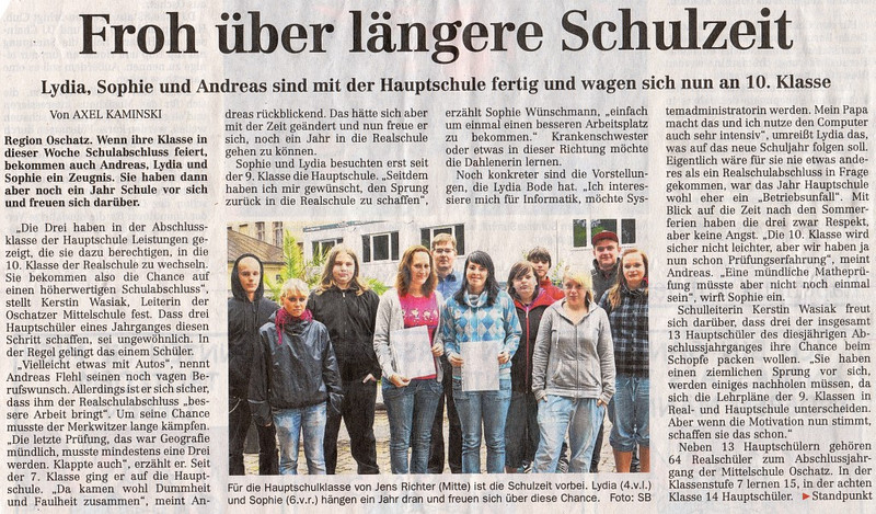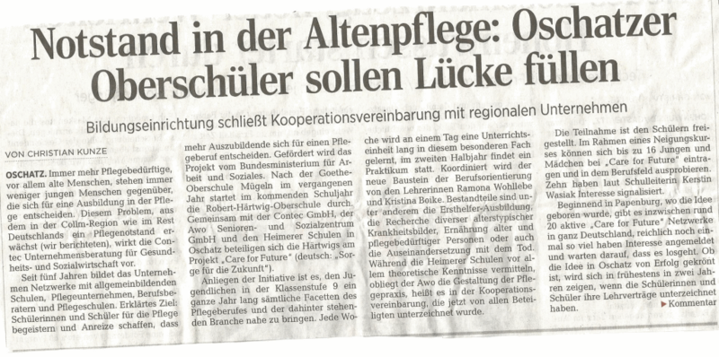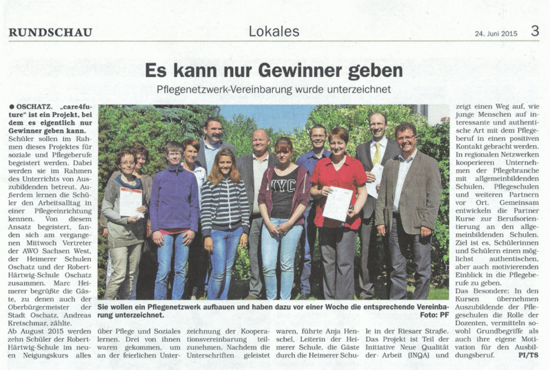 24.06.2015: OAZ und Oschatzer Rundschau berichteten über die Kooperationvereinbarung "care4future"