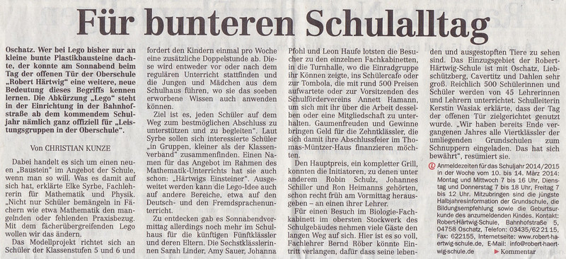 27.01.2014: OAZ-Bericht über den Tag der offenen Tür vom 25.01.2014