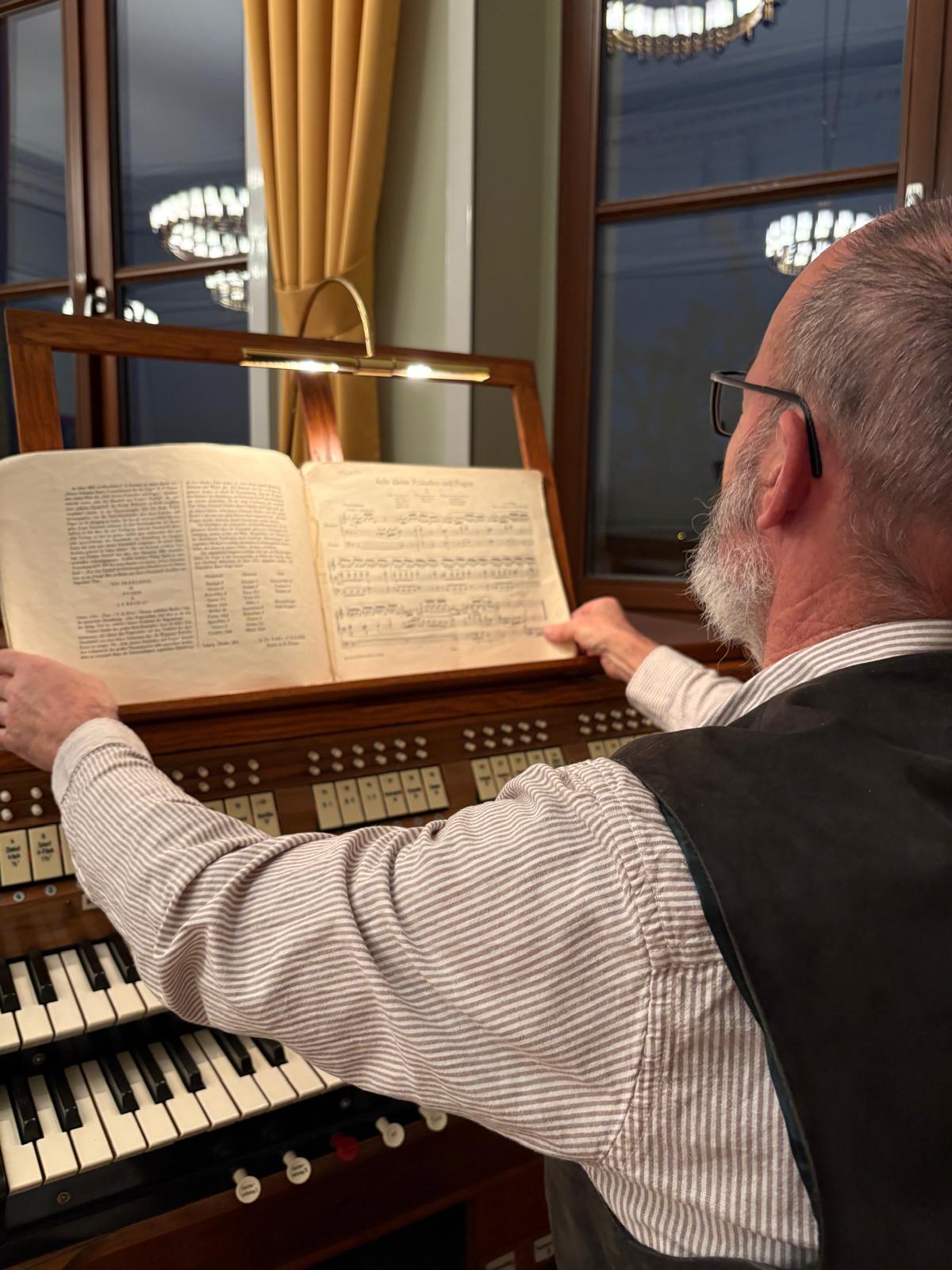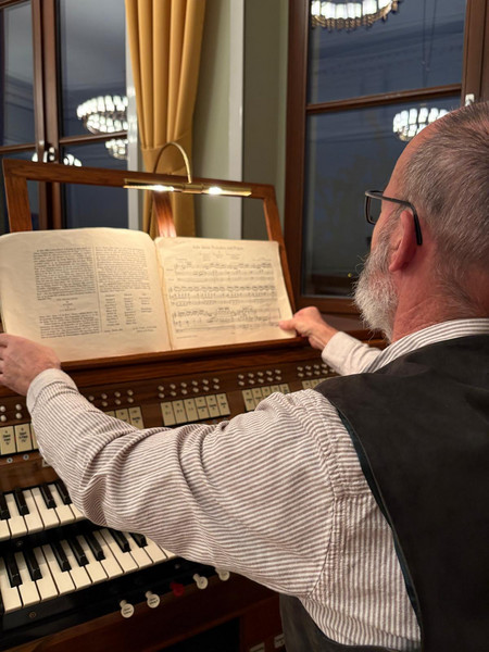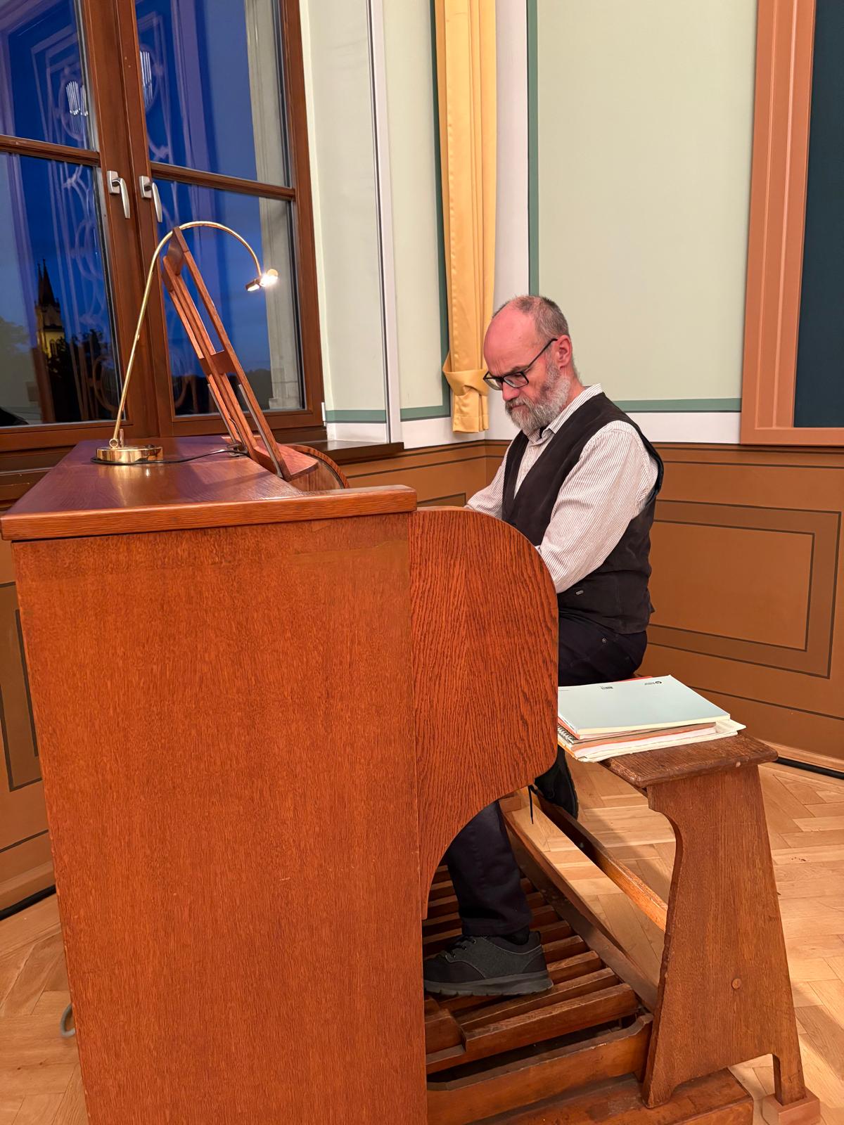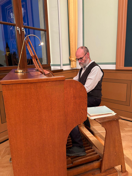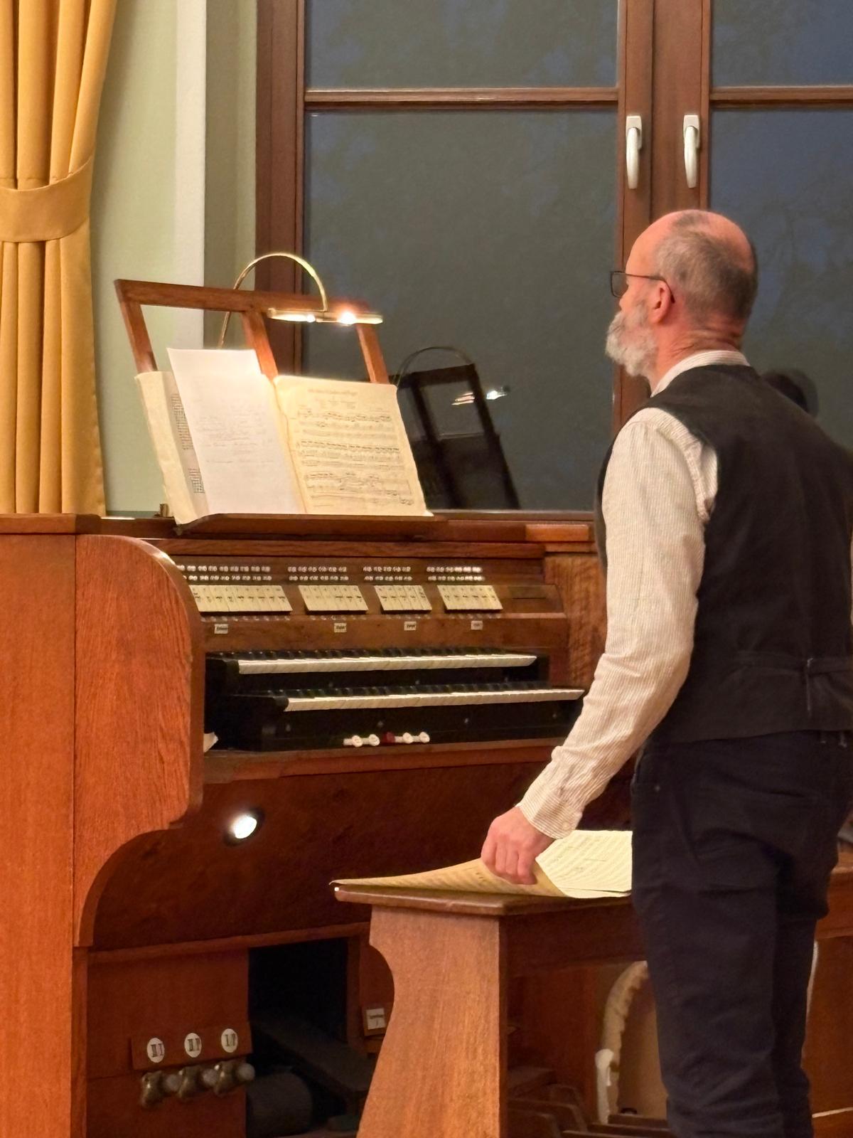 Schon mit den ersten Tönen wurde deutlich, dass dieser Abend etwas Besonderes werden würde. Herr Schiel entlockte der Schulorgel eine beeindruckende Vielfalt an Klangfarben – von zarten, fast schwebenden Pianissimo-Passagen bis hin zu kraftvollen, majestätischen Akkorden, die den Raum erfüllten.