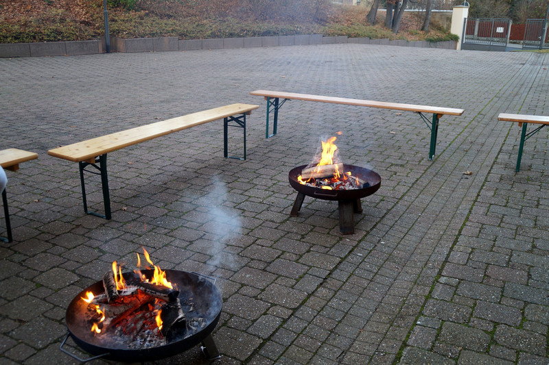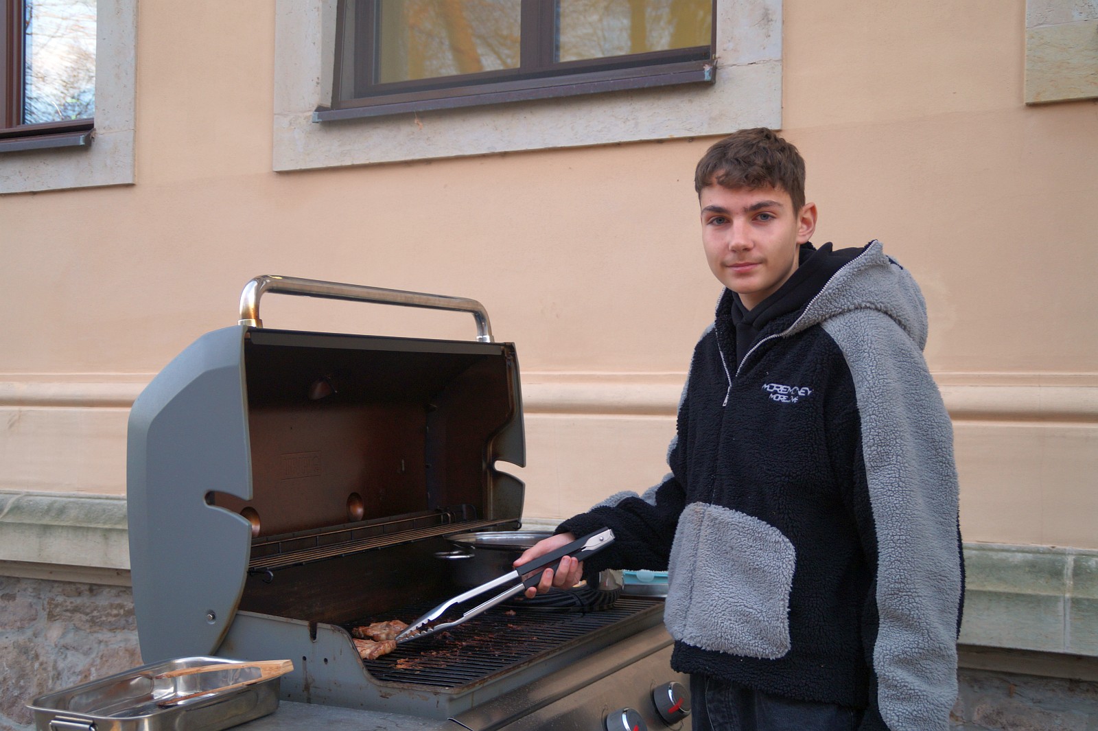 Ein großer Andrang herrschte aber auch an den Verpflegungsständen: Das Schüler-Café der 10. Klassen im Erdgeschoss war durchgehend gut besucht und hat dem Abschlussjahrgang durch den Verkauf von Speisen und Getränken wichtige Einnahmen für die Abschlussfeierlichkeiten gesichert. Ebenso beliebt waren das Stockbrot und die Bratwürste der Abschlussklasse 9b im Hof – sie waren in kürzester Zeit ausverkauft, sodass zügig Nachschub besorgt werden musste.