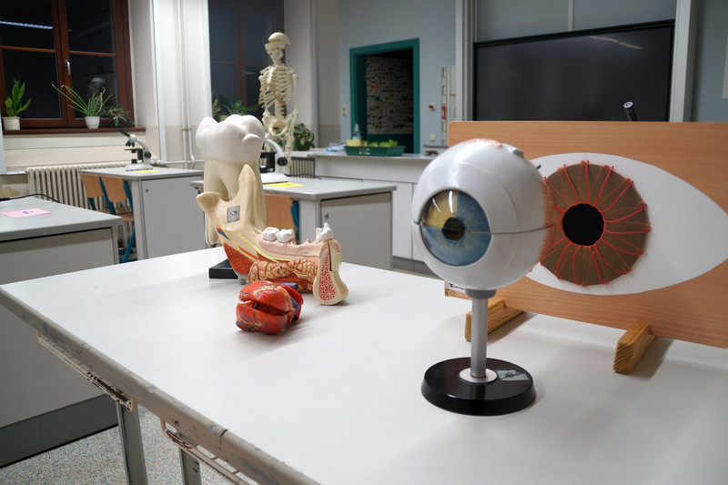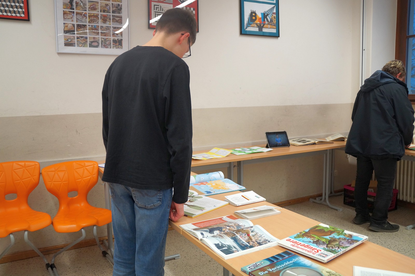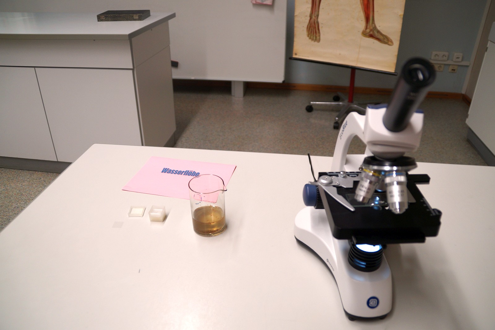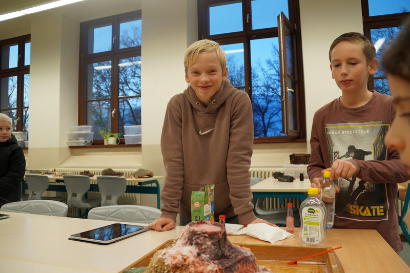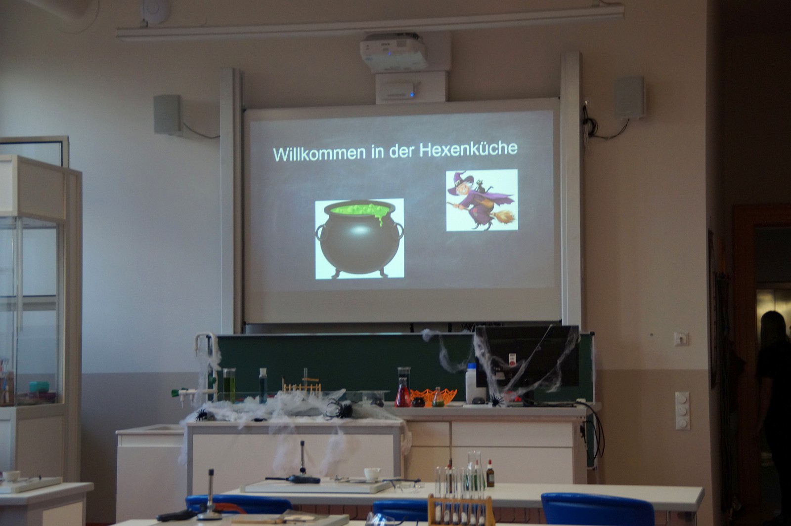 Die Erkundungstour führte sie vom Speiseraum im Keller bis in den Chemie-Raum im Dachgeschoss der Schule. Neben den Experimenten im Chemie- und Physikraum und dem Mikroskopieren im Biologie-Fachbereich konnten die Besucher vielfältige Aufgaben sowie Rätselstationen in den anderen geöffneten Räumen der Schule vorfinden. In anregenden Gesprächen konnten wichtige Informationen zwischen Lehrern und Besuchern ausgetauscht werden. Ehemalige Schüler und Lehrer wurden ebenfalls herzlich willkommen geheißen und trugen zur besonderen Atmosphäre bei.