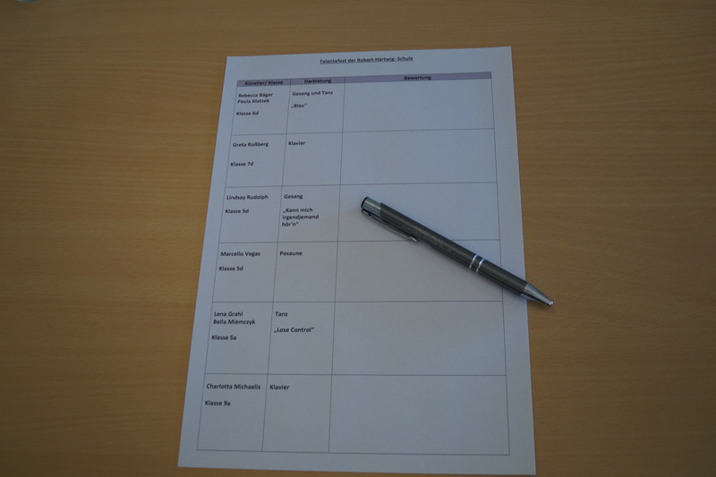 Am Donnerstag, 18.9., fand an unserer Schule eine ganz besondere Veranstaltung statt: Das Talente-Fest. Vor einer sichtlich beeindruckten Jury, bestehend aus unserer Schulleiterin Frau Klöditz, Frau Franke als Elternvertreterin und unseren zwei Musiklehrern Frau Rothkirch und Herrn Riedel, zeigten insgesamt sechs mutige Schülerinnen und Schüler aus den Klassenstufen 5, 6, 7 und 9 ihr Können.