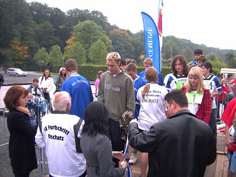 Bereits zum 3. Mal fand dieser Lauf im O-Park statt. Neben dem Oschatzer Gymnasium, den Mittelschulen Mügeln, Wermsdorf, Riesa/Merzdorf und Strehla, gelang es unserer Schule in allen 3 Altersklassen eine Mannschaft aufzustellen. Die zulaufende Strecke war zwar um einige Meter kürzer als unsere Sportplatzrunde, dennoch anspruchsvoller, auf Grund des Bodenbelages. Dies schreckte jedoch unsere Läufer keinesfalls zurück. Jeder gab sein Bestes, auch wenn es am Ende nicht immer für einen Platz auf dem obersten "Treppchen" reichte. Besonderer Dank gilt den Läufern Franziska Waage und Dominik Dennhardt, die in letzter Minute durch ihre Einsatzbereitschaft, die ausgefallenen Sportler der Altersklasse 6 ersetzten. Somit konnte diese Staffel an den Start gehen und mussten nicht ausfallen. Gleichzeitig möchte wir die Gelegenheit nutzen, um den Sportlern Marieke Hoogendoorn, Tobias Gast und Babett Schwalbe ganz herzlich für ihre Einsatzbereitschaft danken. Alle 3 kamen leider dieses Mal nicht zum Einsatz und erschienen dennoch als Ersatzläufer. (IG)