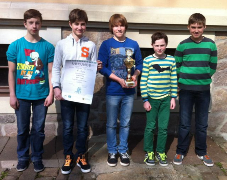 Am Samstag, dem 14. März, vertraten Jordaan Knorr, Marius Müller, Karl Flach, Leon Haufe und Mika Fischer beim Landesfinale "Jugend trainiert für Olympia" in Riesa im Gerätturnen die Robert-Härtwig-Oberschule. Am Boden, Sprung, Barren und Reck galt es, mit zum Teil ungewohnten Übungen, die Kampfrichter davon zu überzeugen, dass sie in dieser Zusammenstellung zu den besten Schulmannschaften ihrer Leistungsklasse gehören.Gestützt auf die Leistungen der beiden Vize-Sachsenmeister Jordaan Knorr und Marius Müller gelang dem Team ein überzeugender Auftritt und die Siegertrophäe trat erneut den Weg nach Oschatz an.