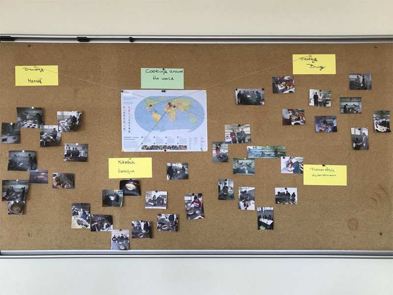 Dabei entschieden sich die Jugendlichen für ein Land, das sie näher erkundeten und in der Gruppe vorstellten. Ebenso wählten sie eine landestypische Speise, die sie selbständig zubereiteten und die gesamte Klasse im Anschluss zum Probe-Essen einluden.