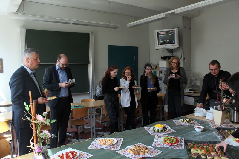 Zum Schluss gab es noch ein kleines Buffet unter den Lehrern und den Herren Piwarz und Pallas.