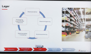 Nach der Bereitstellung von Arbeitsschutzschuhen startete der Rundgang durch die beeindruckenden Lagerhallen. Eine besonders auffällige Station war eine Halle mit einer Temperatur von -24 Grad, in der Kühlketten und temperaturabhängige Prozesse sichtbar wurden. Beeindruckt beobachteten wir, wie Pakete für eine Vielzahl von Kunden vorbereitet, gepackt, sortiert und anschließend an die entsprechenden Bereiche für die LKW-Verladung gebracht wurden.