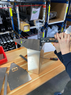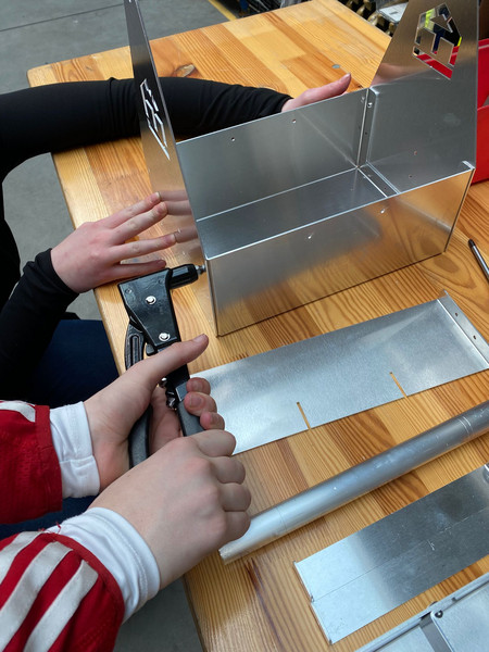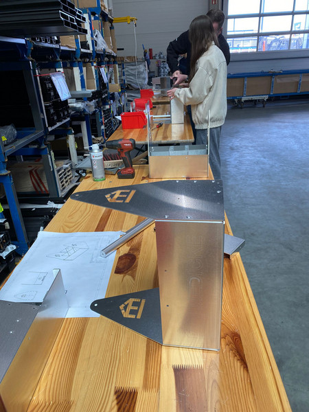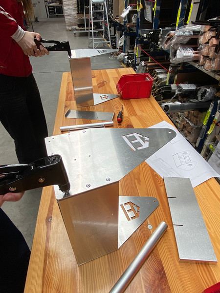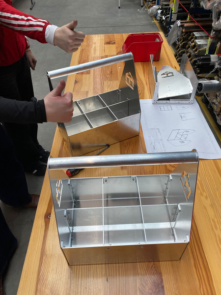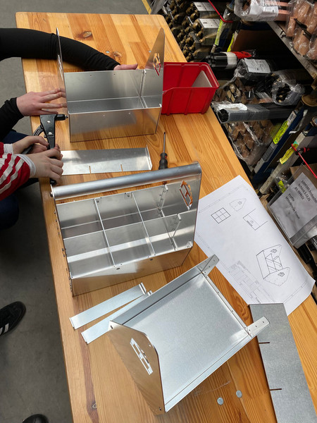 Highlight des Tages war die eigene Fertigung eines Flaschenkorbes, die unter der fachkundigen Anleitung ehemaliger Auszubildender stattfand. Schritt für Schritt führten sie uns durch den Prozess – von der Materialauswahl über die präzise Umsetzung der Konstruktionszeichnung bis hin zum fachgerechten Einsatz der Blindnieten. So entstand in kurzer Zeit ein robuster, praktischer Korb, der höchsten Ansprüchen genügt.